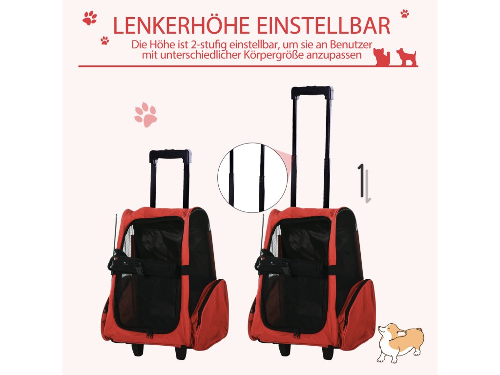 PawHut taška na vozík pro psy Přepravní taška pro zvířata Vozík 2 v 1 s dvířky a oknem prodyšný červený 42 x 25 x 55 cm | Aosom