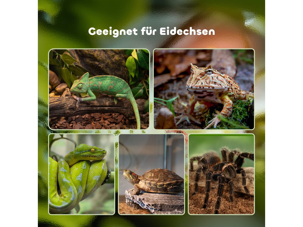 - ✔ Vhodný pro ještěrky, rohaté žáby, vodní želvy, hady, pavouky a další zvířata