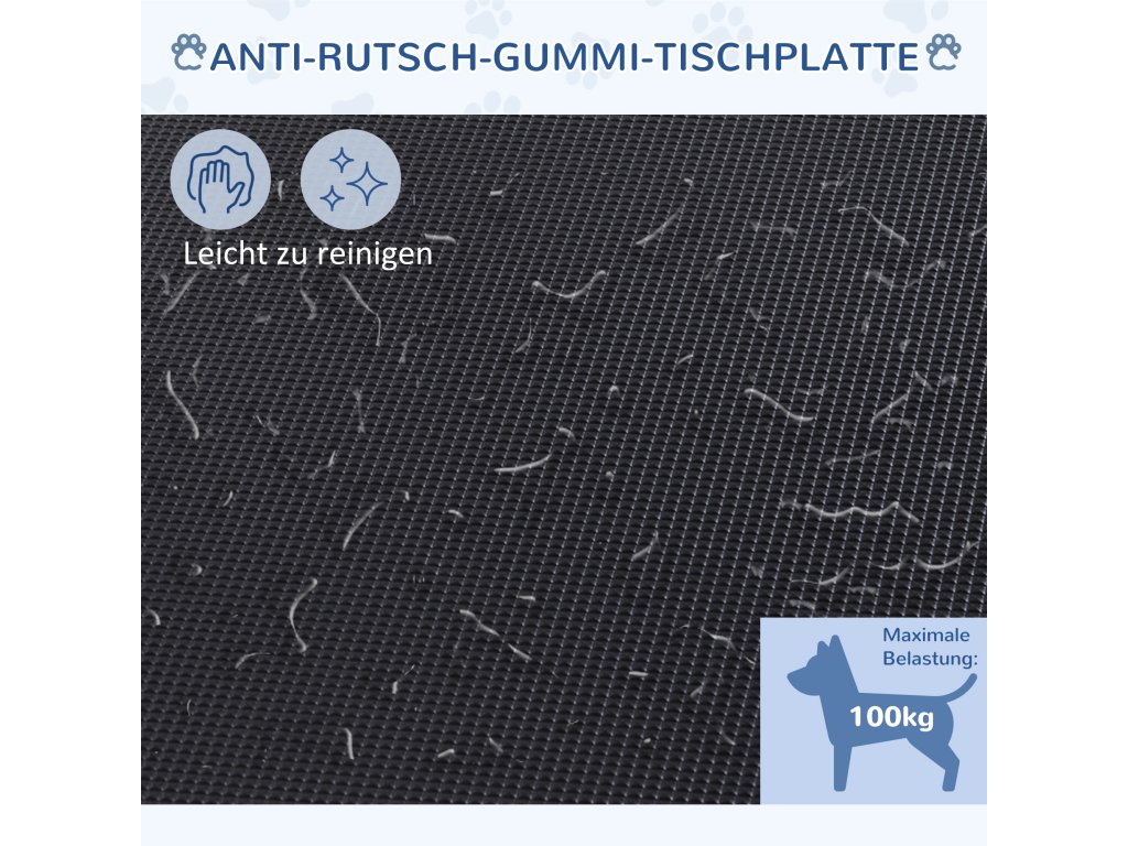 - ✔ Protiskluzová gumová deska stolu zabraňující uklouznutí vašeho psa a zaoblené rohy zabraňující nehodám