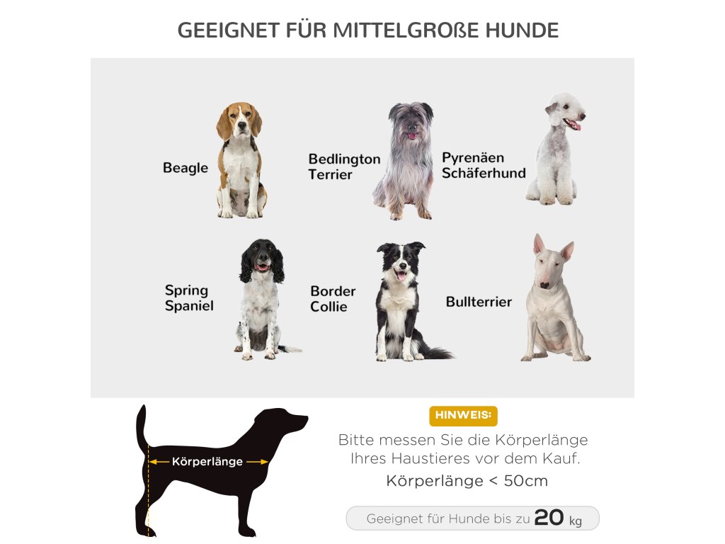 - ✔ Vhodné pro středně velké psy do 20 kg a délky těla menší než 50 cm