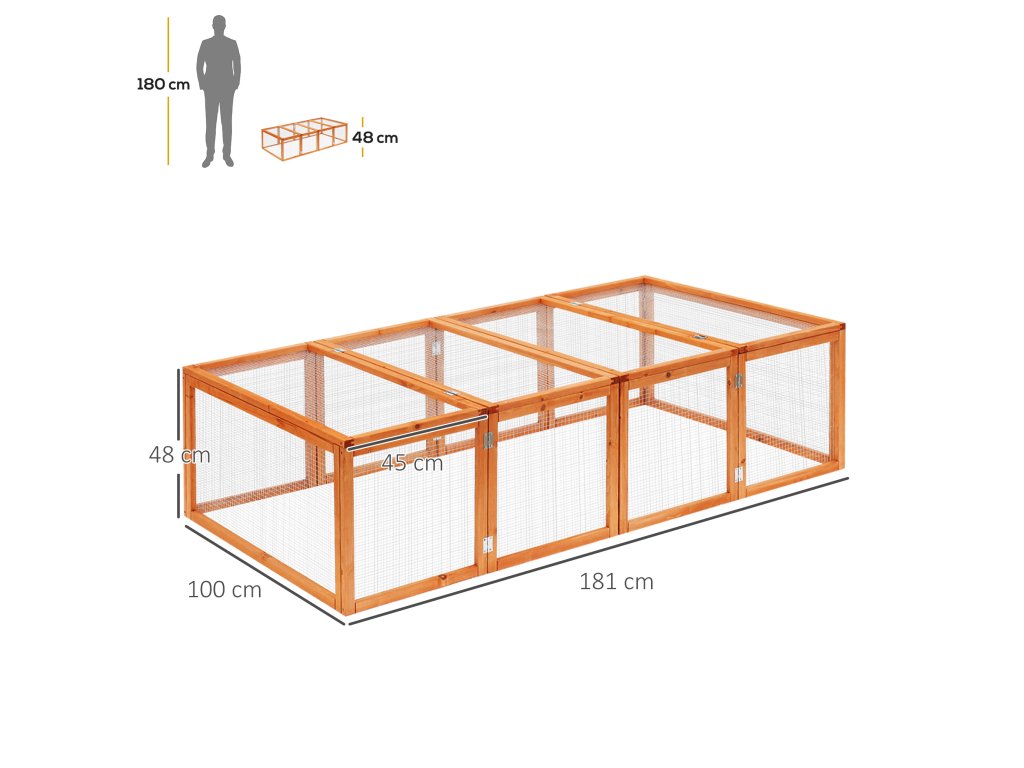 PawHut volný výběh pro králíky Volný výběh pro malá zvířata z jedlového dřeva, přírodní 181x100x48cm, ideální pro zahradu a výběh | Aosom.de