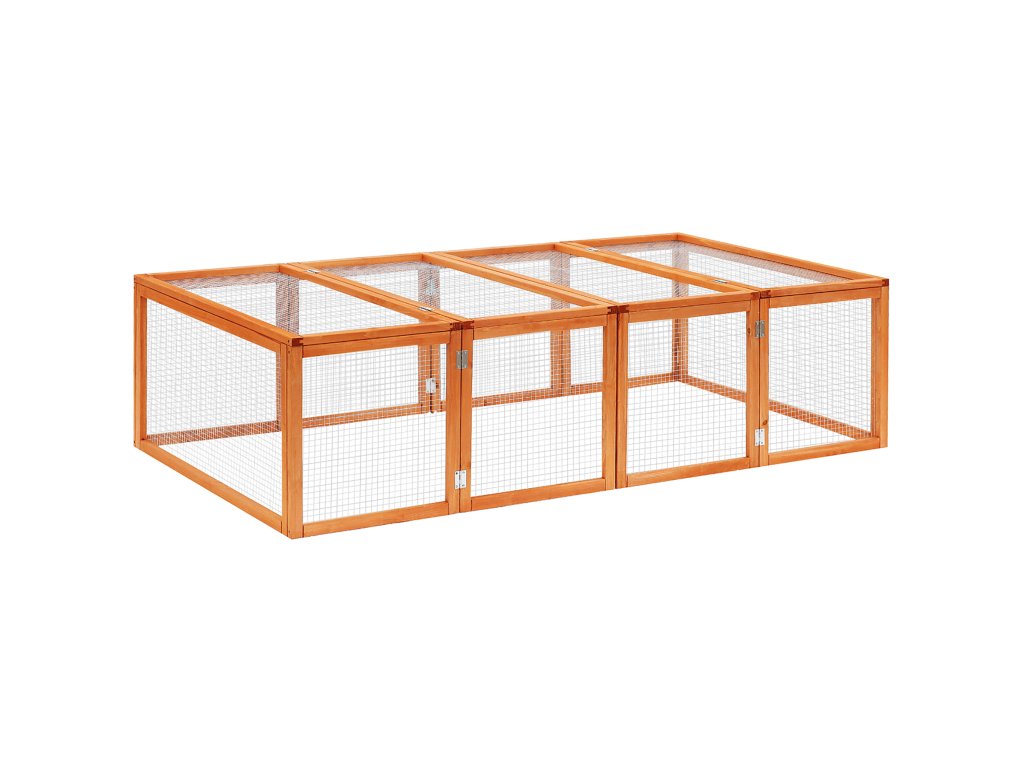 Náš venkovní výběh od společnosti PawHut nabízí vašim malým zvířatům skvělé místo, kde mohou vypustit páru a odpočívat venku. Je vyroben výhradně z robustního jedlového dřeva ošetřeného vodoodpudivou barvou, která zajišťuje optimální odolnost vůči povětrnostním vlivům, a nemusíte se obávat nepříjemné koroze kovových klecí. Kryt chrání vaše malá zvířata například před dravými ptáky, zatímco dvě odklápěcí víka zajišťují snadný přístup.