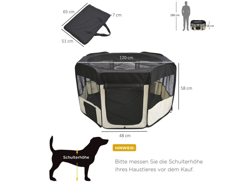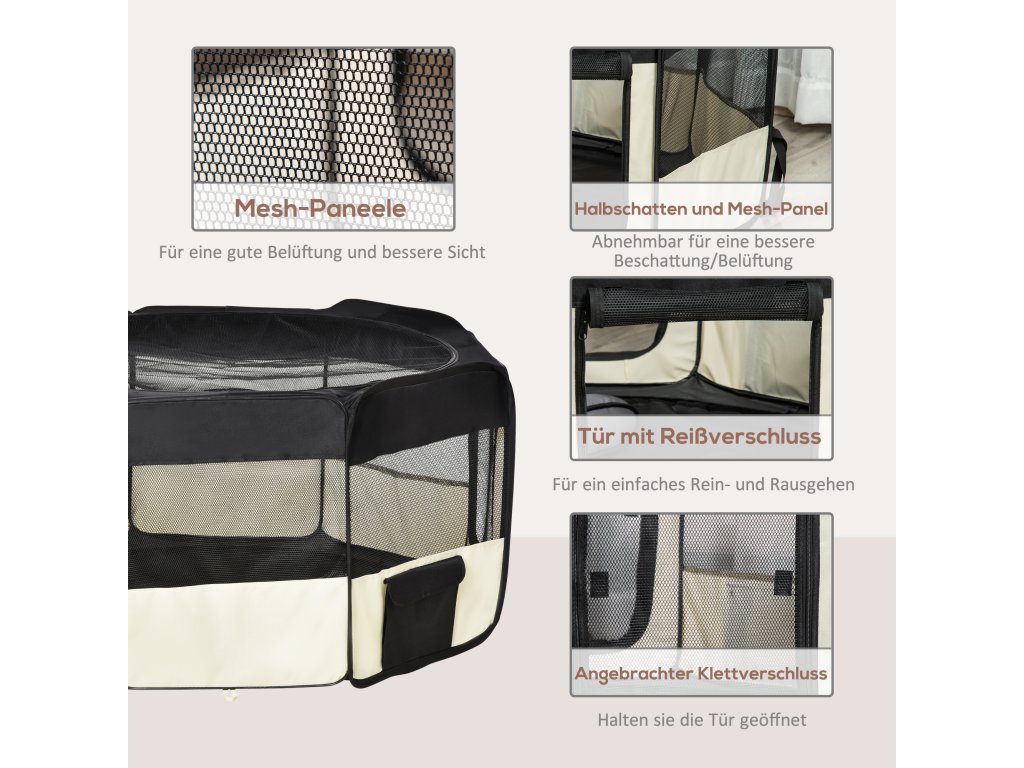 Tento výběh pro štěňata lze používat venku i uvnitř a je vhodný zejména pro štěňata nebo jiná malá zvířata. Je ideální pro výcvik psů nebo jako místo ke spánku, odpočinku či hře. Zaručuje bezpečnost vašeho štěněte a čistotu v domě, když se o svého mazlíčka nemůžete starat.