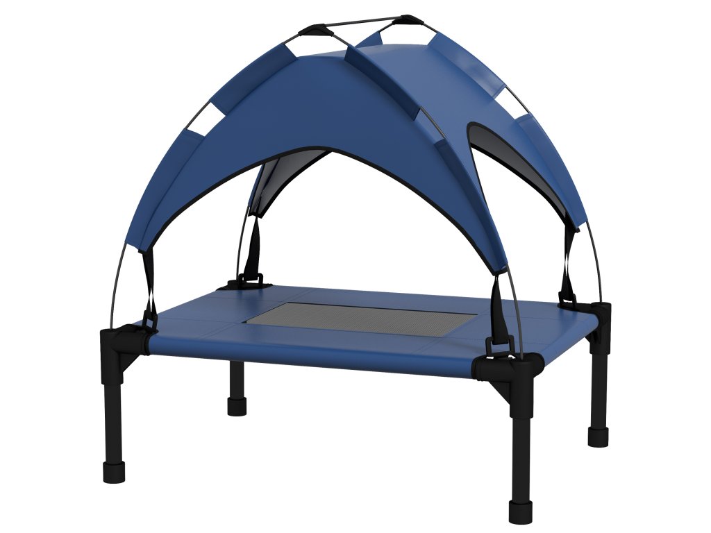 PawHut Vyvýšený pelíšek pro psy se stříškou, pelíšek pro domácí mazlíčky, venkovní pelíšek se stříškou, prodyšný, pro mini a malé psy Tmavě modrý Oxford 61 x 46 x 63 cm