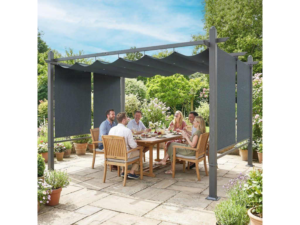 Pergola 3 x 4 m s posuvnou střechou, automaticky zatahovací rolety, hliníkový rám UV50+