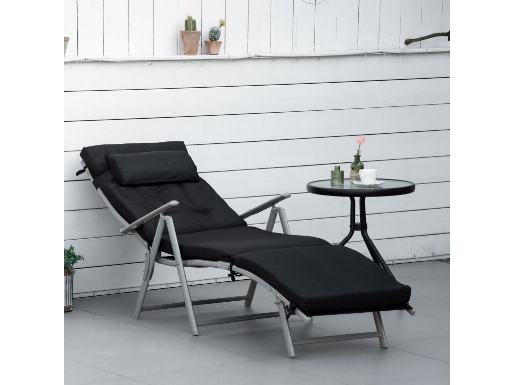 Plážové lehátko Outsunny skládací, nastavitelné v 7 úrovních, odolné proti povětrnostním vlivům, s polštářem, Texteline, polyester, kov, 137 x 63,5 x 100,5 cm, černá| Aoso