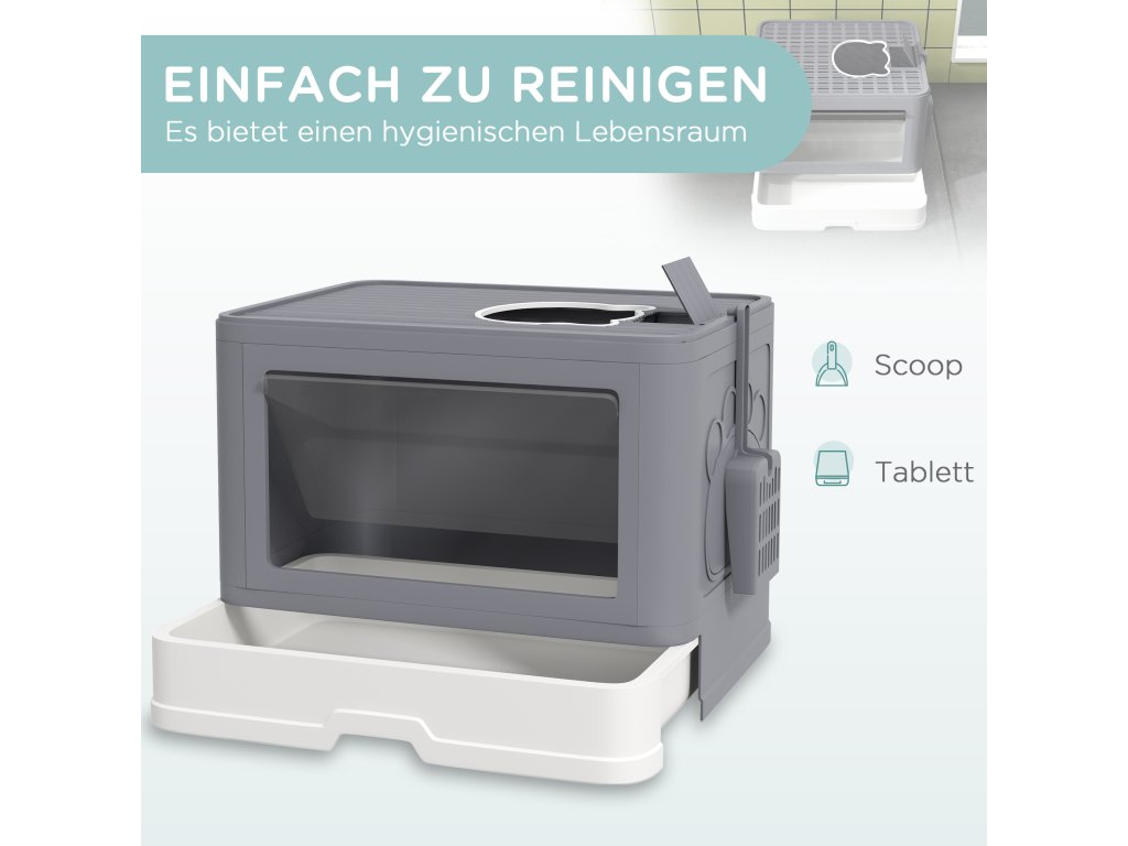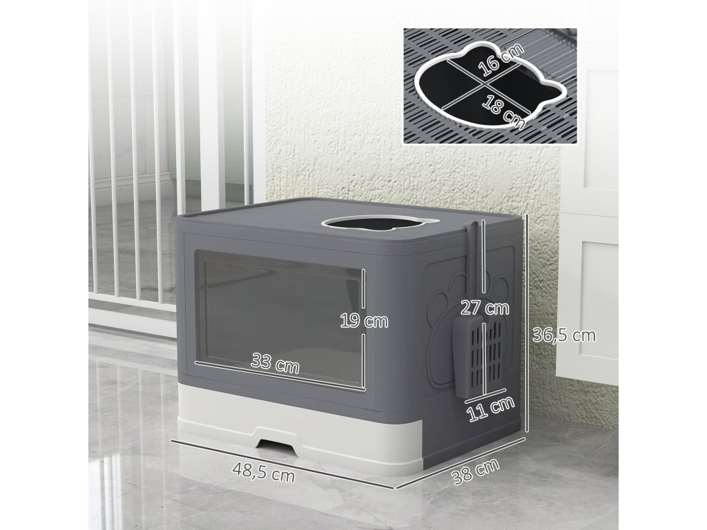 Záchod PawHut s předním vstupem a horním výstupem nabízí kočce dostatek prostoru. V horní části je umístěno sítko, které minimalizuje rozptyl kočičího steliva a ušetří vám práci se zametáním. Naše uzavřené provedení nabízí vašemu chlupatému příteli větší pohodlí a soukromí. Vyzkoušejte si snadnou údržbu odpadkového koše s naším boxem, který optimalizuje pohodlí a zlepšuje životní prostor vaší kočky.