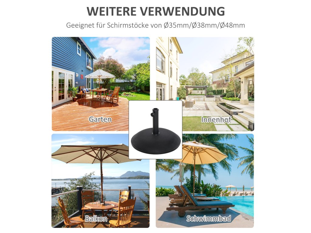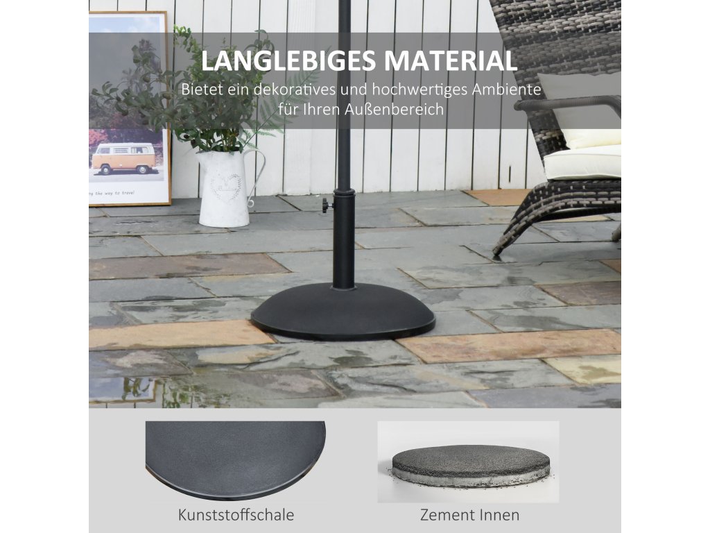 Podstavec pod slunečník Outsunny 25 kg z oceli a cementu, černý, Ø49 x 37 cm, stabilní ochrana před sluncem pro zahradu a terasu | Aosom.de