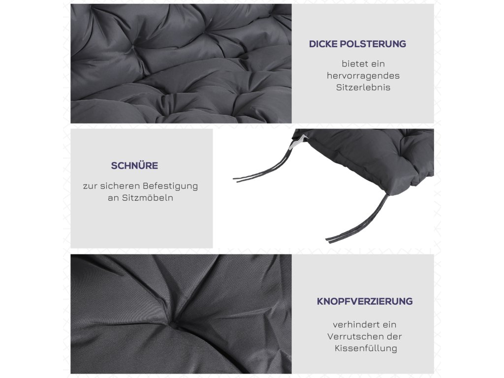 Tento polštář na lavici Outsunny je fantastickým doplňkem ke každé kovové nebo dřevěné lavici. Polštářek zvyšuje pohodlí vašeho sezení. Je vyroben z polyesterové tkaniny se silnou pěnovou výplní. Polštářek je určen k bezpečnému připevnění k vašemu venkovnímu nábytku pro pohodlnější sezení.