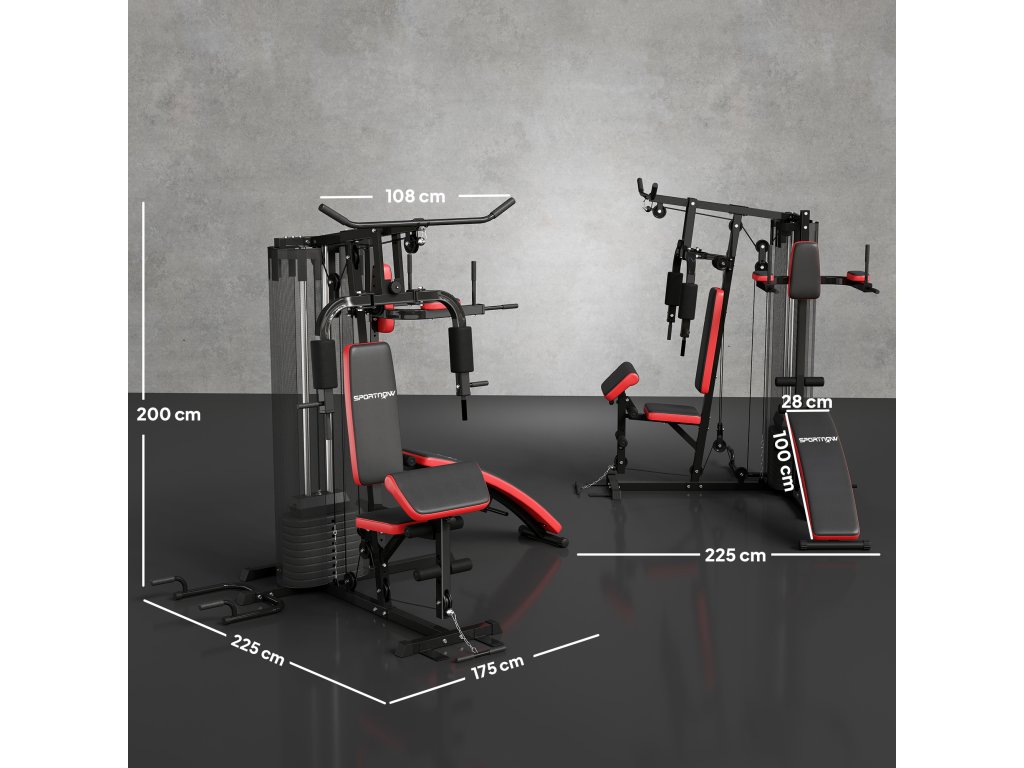 - Rozměry domácí posilovny: 225L x 175W x 200H cm. Maximální zatížení: 110 kg