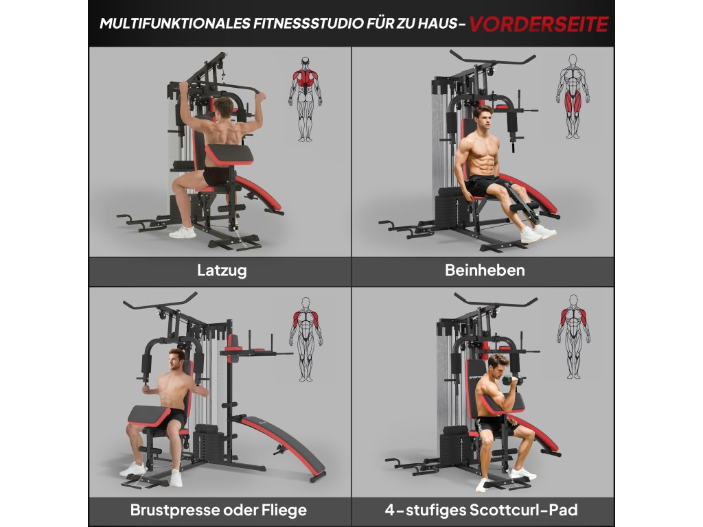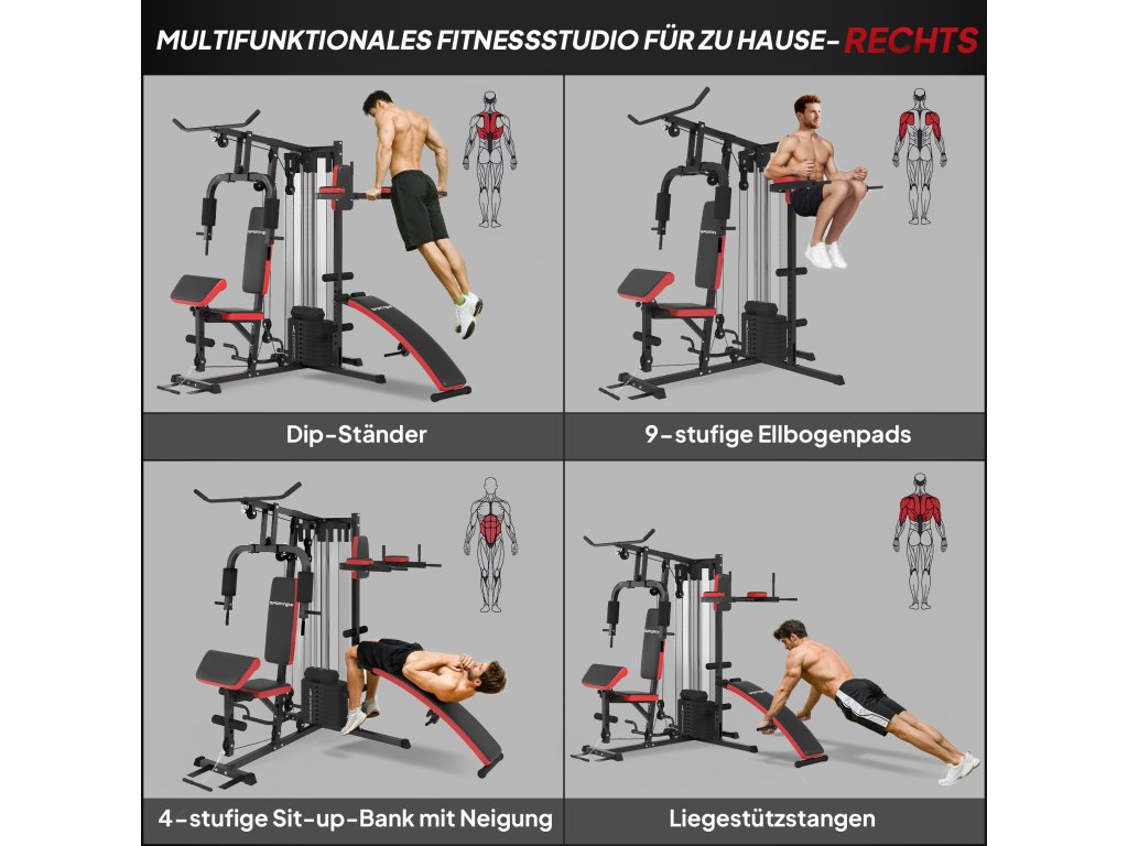 - ✔ Kompaktní design posilovací stanice, kterou mohou používat tři osoby najednou