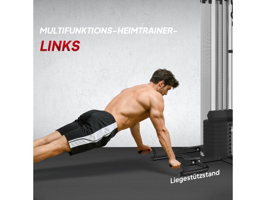 Optimalizujte svůj trénink pomocí fitness stanice SPORTNOW. Toto zařízení umožňuje komplexní silový trénink celého těla a zaměřuje se na různé svalové skupiny. Ať už se jedná o přítahy na hrazdě, prsní svaly, pokrčení nohou, extenze nohou, dipy, kliky nebo sedy-lehy na fitness věži - vše je možné. Začněte s pohodlnou zátěží do 65 kg a průběžně ji zvyšujte. Využijte plný potenciál své domácí posilovny a staňte se zdravějšími a silnějšími.