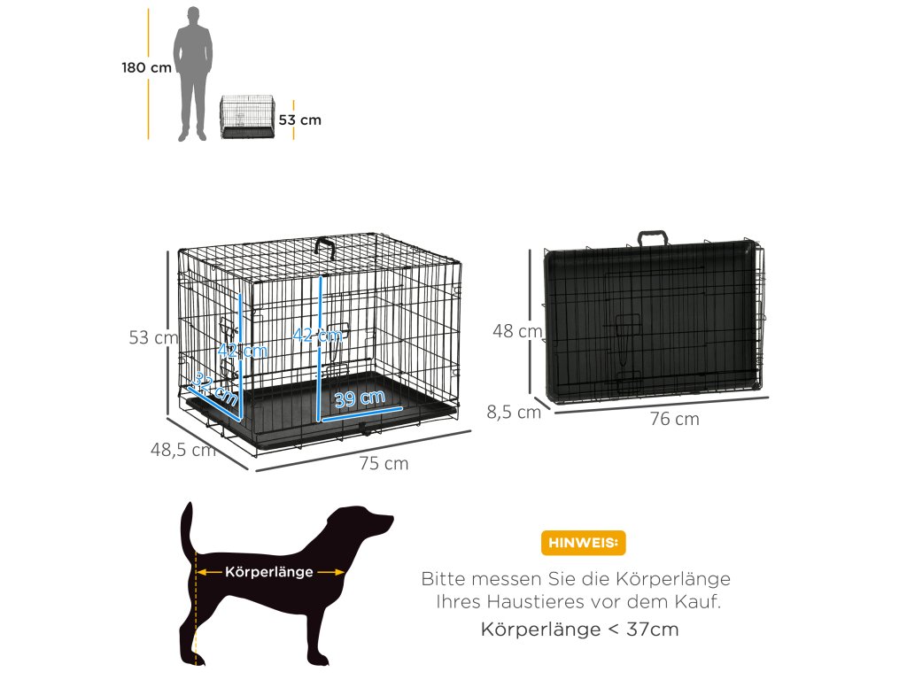 - Poznámka: Když jsou dvířka zavřená, je tato klec vhodná pouze pro krátkodobé ubytování nebo pro přepravu vašeho psa. Psi by nikdy neměli být drženi v zavřené kleci po delší dobu.