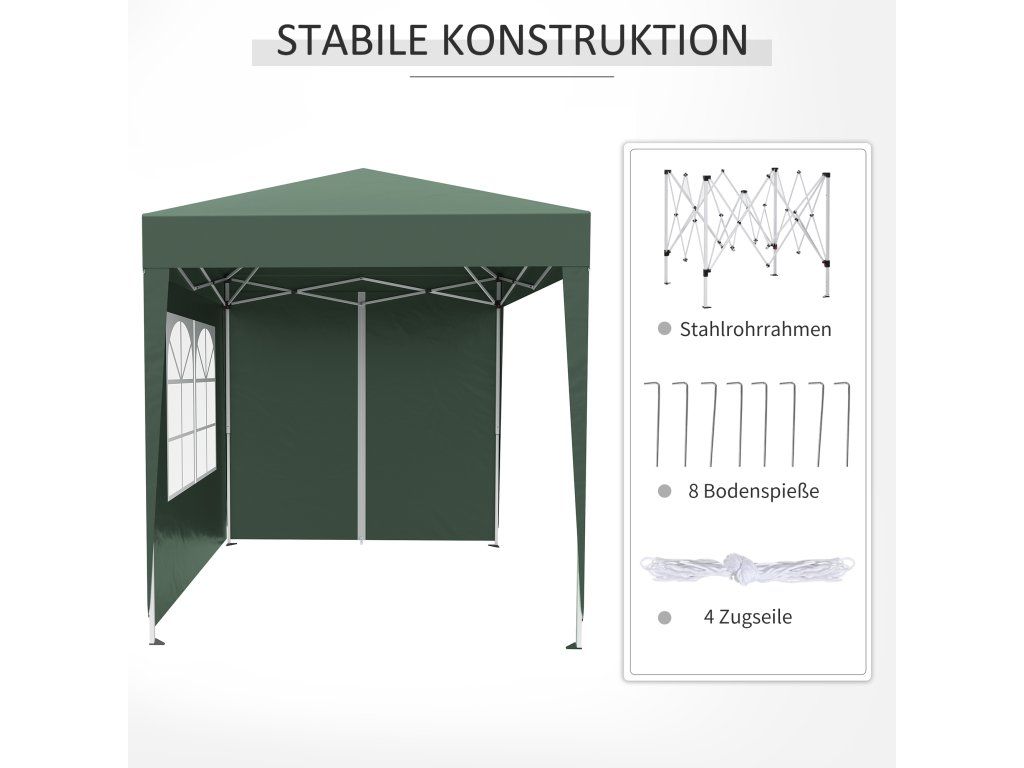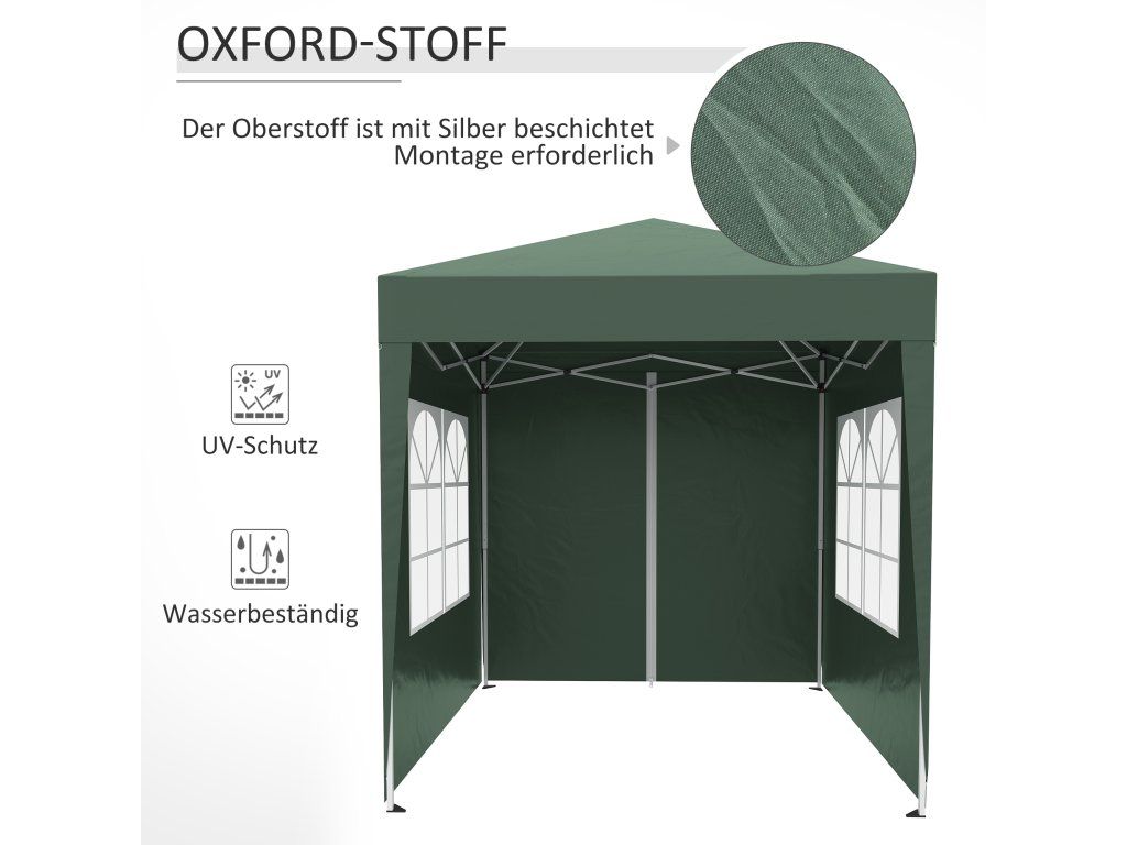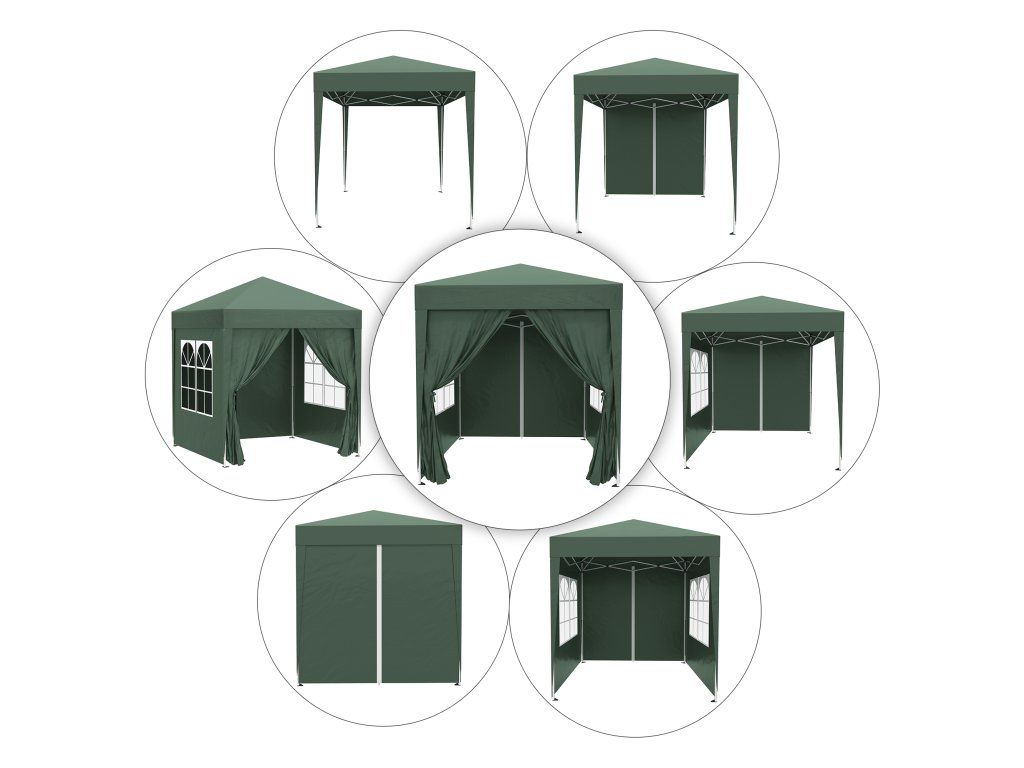 - Rychle postavitelná ochrana proti slunci: snadno přenosný a postavitelný pavilon (2 x 2 m) se 4 odnímatelnými stěnami pro různé venkovní akce