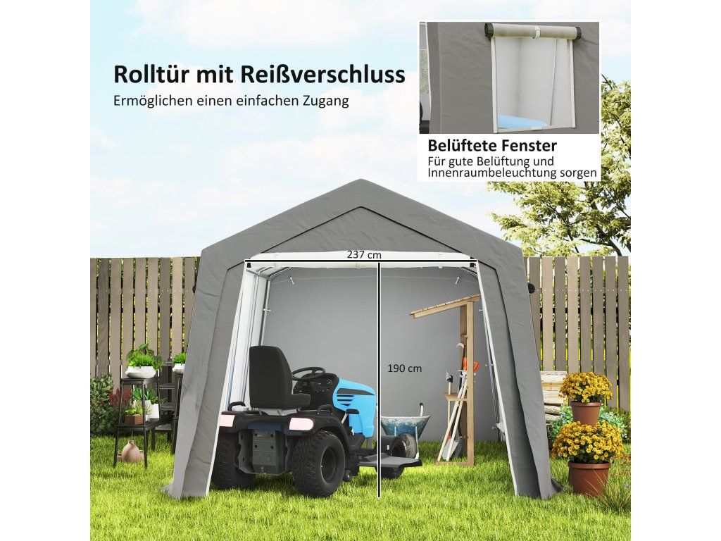 - Ochrana proti povětrnostním vlivům: Tento stan na nářadí je vybaven pro všechny povětrnostní podmínky a má PE potah, který je voděodolný, odolný proti UV záření a větru. Ať už prší, sněží nebo svítí silné slunce, vaše kola, nářadí a venkovní vybavení zůstanou vždy v bezpečí a suchu.