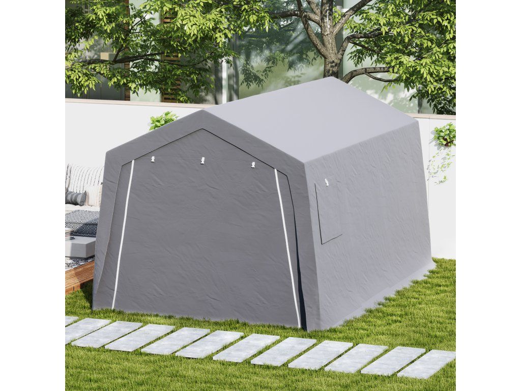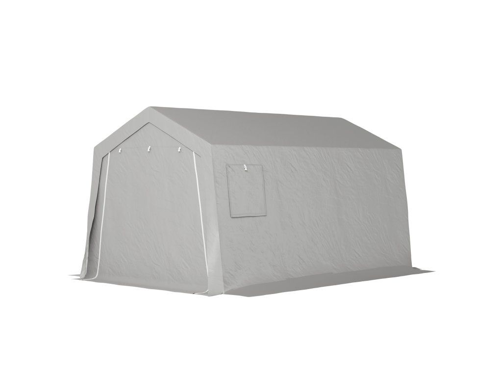 Přístřešek na vybavení se šikmou střechou vodotěsný Stan na vybavení s dveřmi, okna 300x447x255 cm, světle šedý
