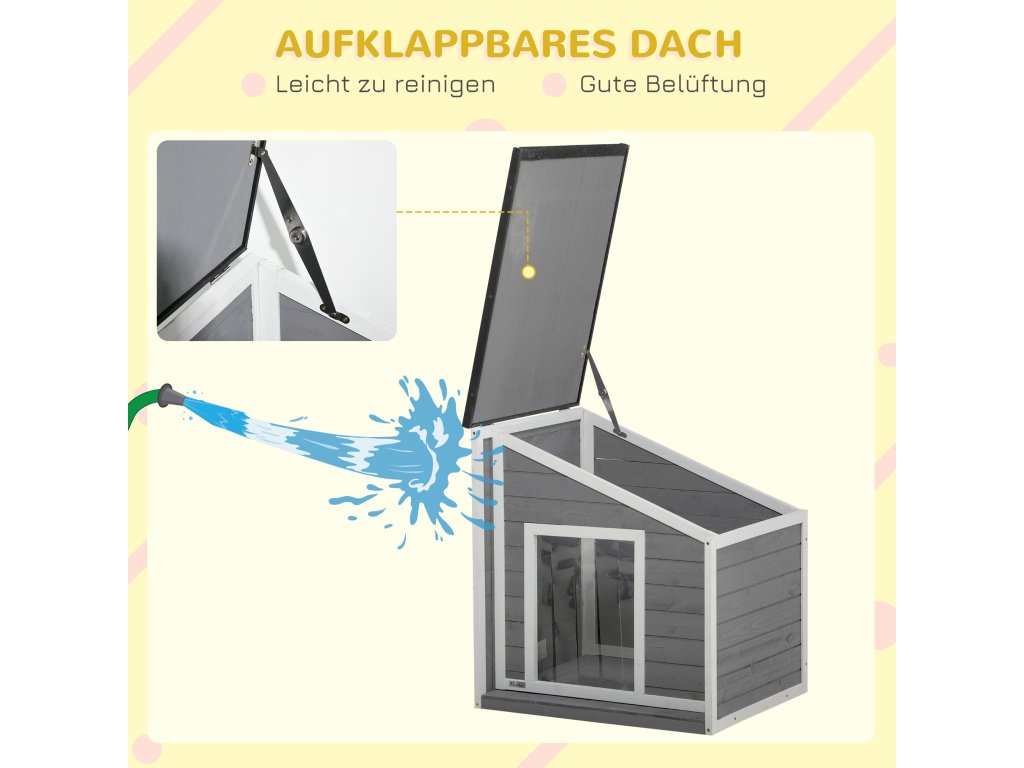 - Otevírací střecha: Otevírací střecha umožňuje větrání a snadné čištění. Můžete se také dostat dovnitř a pohladit svého psa nebo mu dát něco k jídlu.