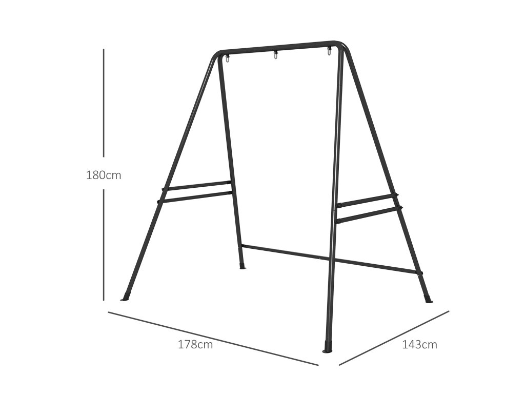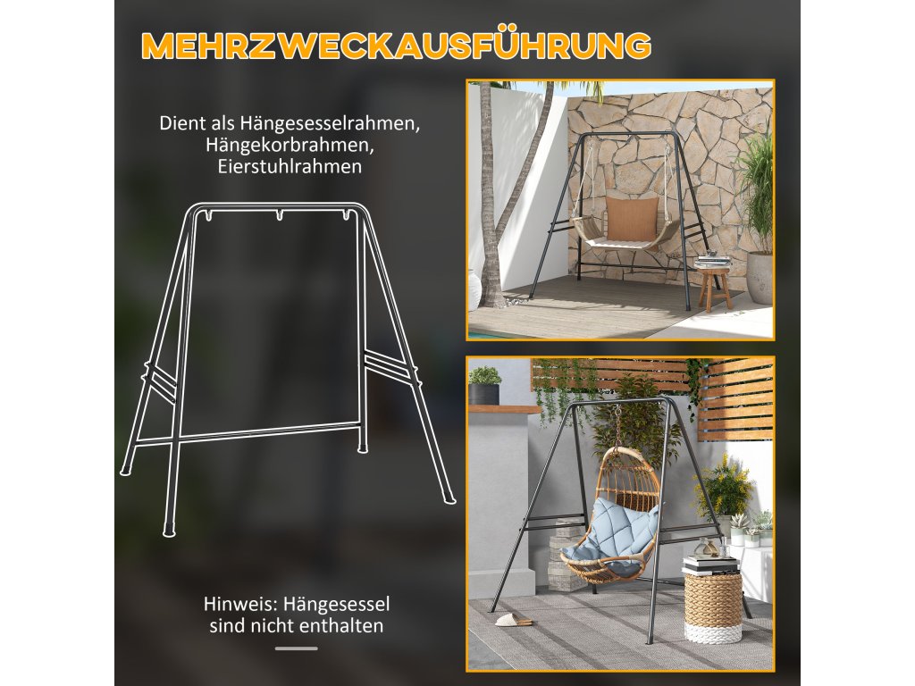 Rám závěsného křesla Outsunny z oceli, 178 x 143 x 180 cm, nosnost až 150 kg, robustní stojan pro závěsná křesla, ideální pro vnitřní i venkovní použití, černý | šedý