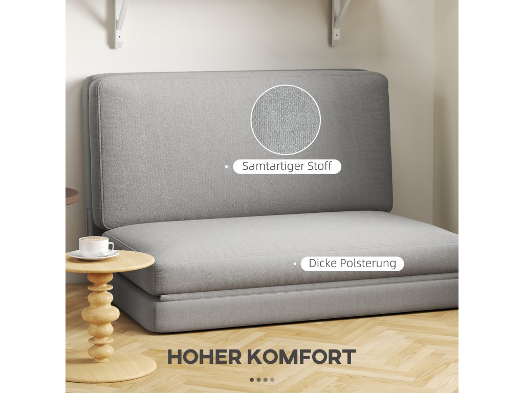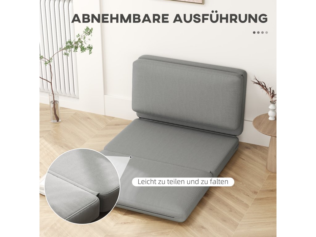 - Chytrá skládací konstrukce: Během okamžiku se přepíná mezi sedákem, lehátkem a matrací na spaní, čímž se podlahová pohovka dokonale přizpůsobí vašim potřebám odpočinku nebo spánku - ideální také pro hosty