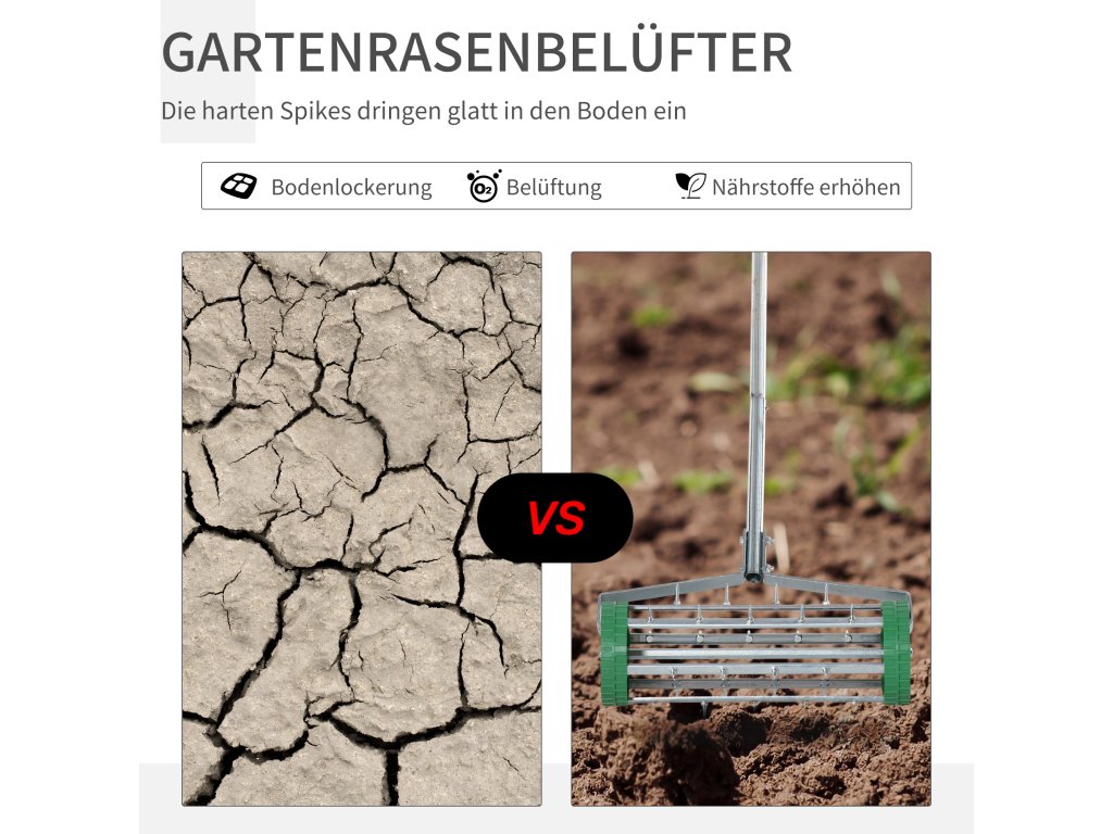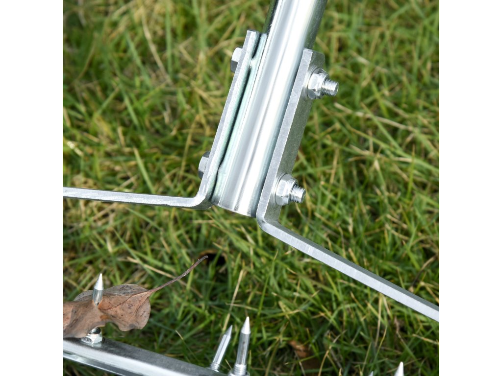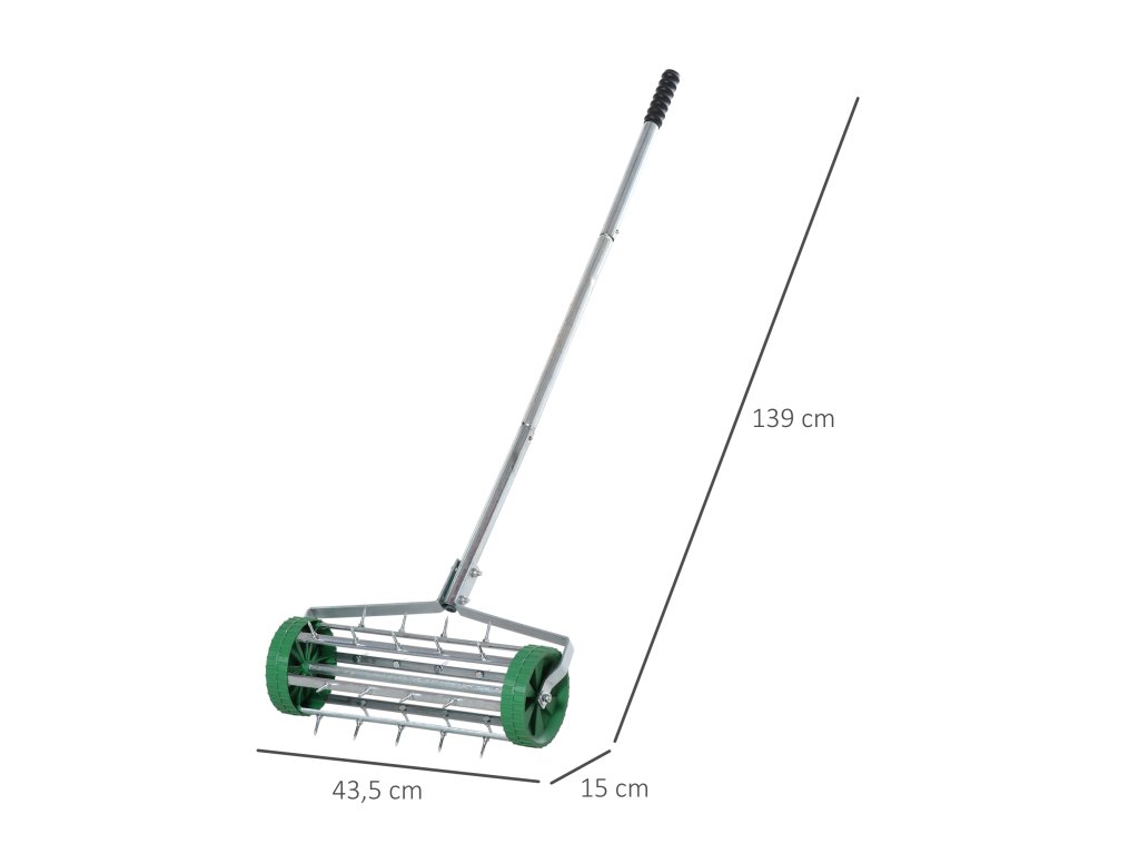 Tento provzdušňovač trávníku od společnosti Outsunny pro váš trávník je dokonalým doplňkem, který pomáhá trávníku udržet živiny. Díky pravidelnému provzdušňování bude váš trávník zdravější a zlepší se odtok vody. Rukojeť lze nastavit do 3 poloh a válec má také otočné hřeby, které se zaboří do půdy. Je vyroben z pozinkovaných kovových trubek a plastu a je skvělým nástrojem pro maximální využití vašeho trávníku.