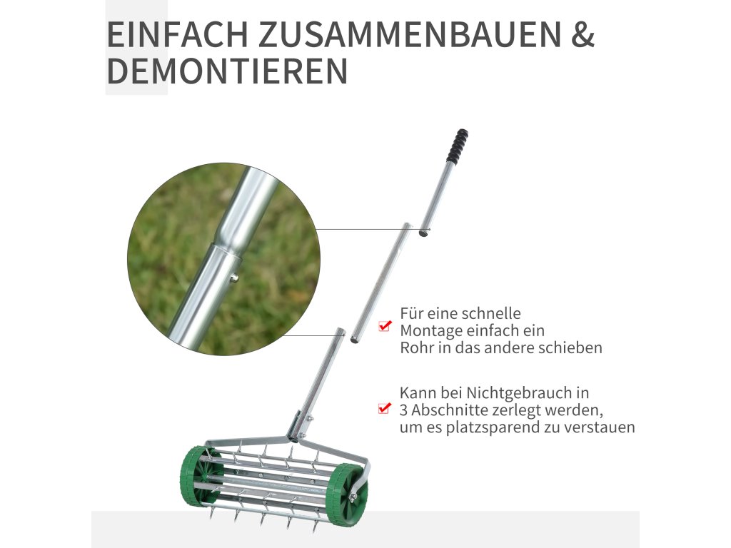 Ruční provzdušňovač trávníku Outsunny s nastavitelnou délkou rukojeti, hrotový válec pro provzdušňování trávníku, válcový provzdušňovač trávníku pro údržbu zahrady | Aosom.de