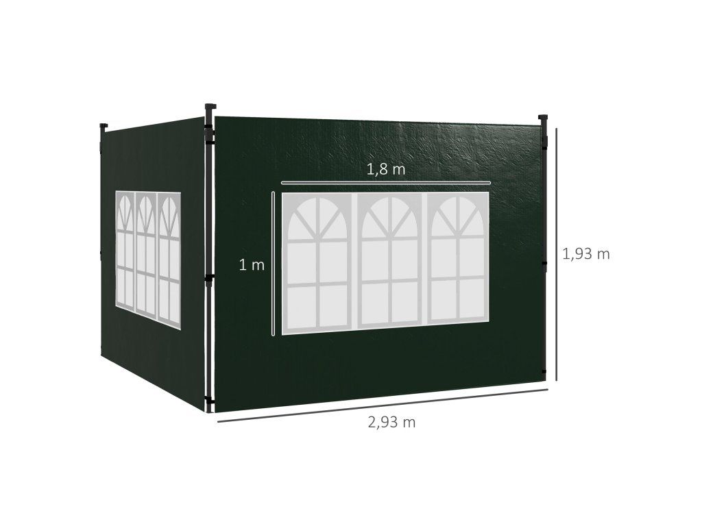 sada 2 bočních stěn pro altán 3x3 3x6 Voděodolné boční panely s oknem Tmavě zelená barva