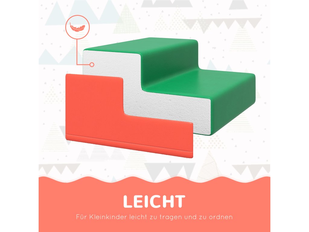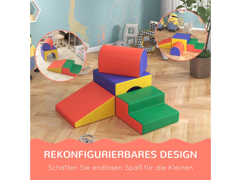 Pro rozvoj dětí v raném věku není nic lepšího než hračky, které podporují jejich dovednosti. Měkká stavebnice HOMCOM se čtyřmi pěnovými bloky, která se skládá z rampy, schodů, tunelu a půlválce, nabízí optimální zábavu na hraní. Děti mohou lézt, klouzat se a vypouštět páru, zatímco pěnové polstrování měkkých stavebních bloků zaručuje bezpečnost. Koženkový potah pěnových stavebních bloků se navíc snadno čistí.