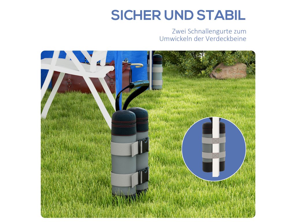 Sada 4 pytlů s pískem pro altán Outsunny, robustní závaží pro pop-up altán, oxfordská tkanina, šedočerná, s držadlem pro stabilitu | Aosom.de