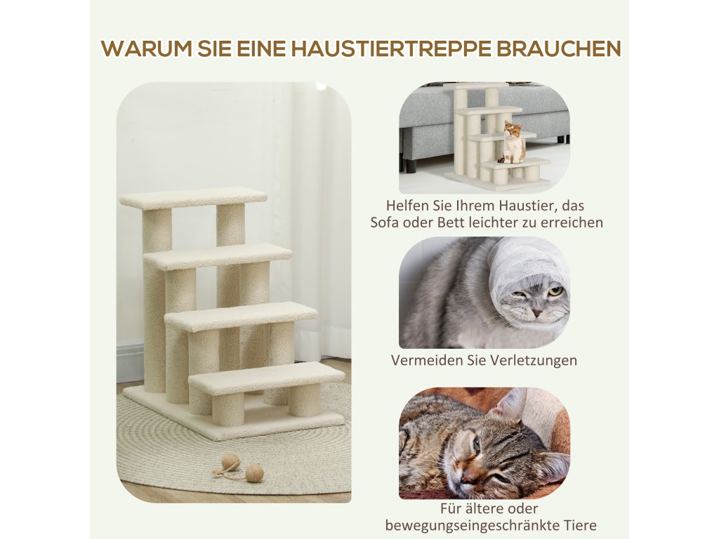 Schody pro psy a kočky PawHut 4stupňové plyšové béžové 63,5x43x60cm ideální pro starší zvířata | Aosom.de
