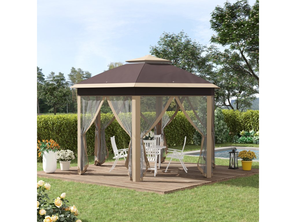 - KOVOVÝ RÁM: Díky robustní konstrukci z práškově lakovaného kovového rámu je tento altán mimořádně stabilní a lze jej používat po celý rok.