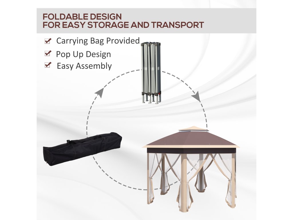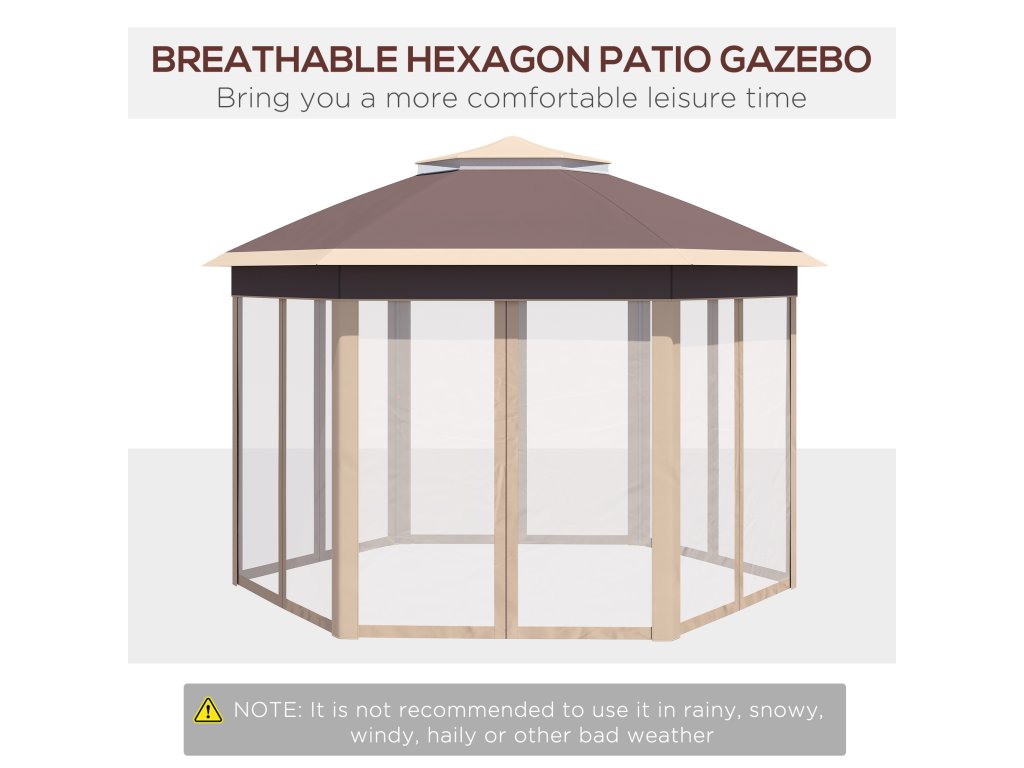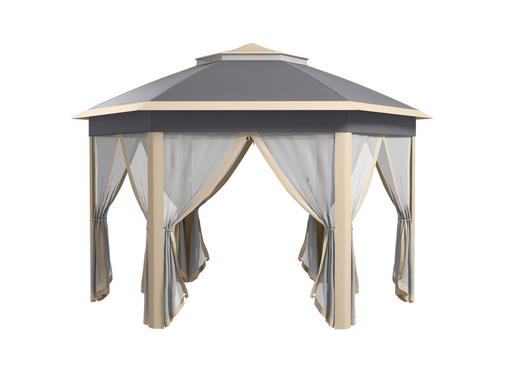 Šestihranný altán Outsunny 4x4m s krytem odolným proti vodě a UV záření, dvojitá střecha, větrací otvor, taška na přenášení, polyester béžová a khaki | Aosom.de