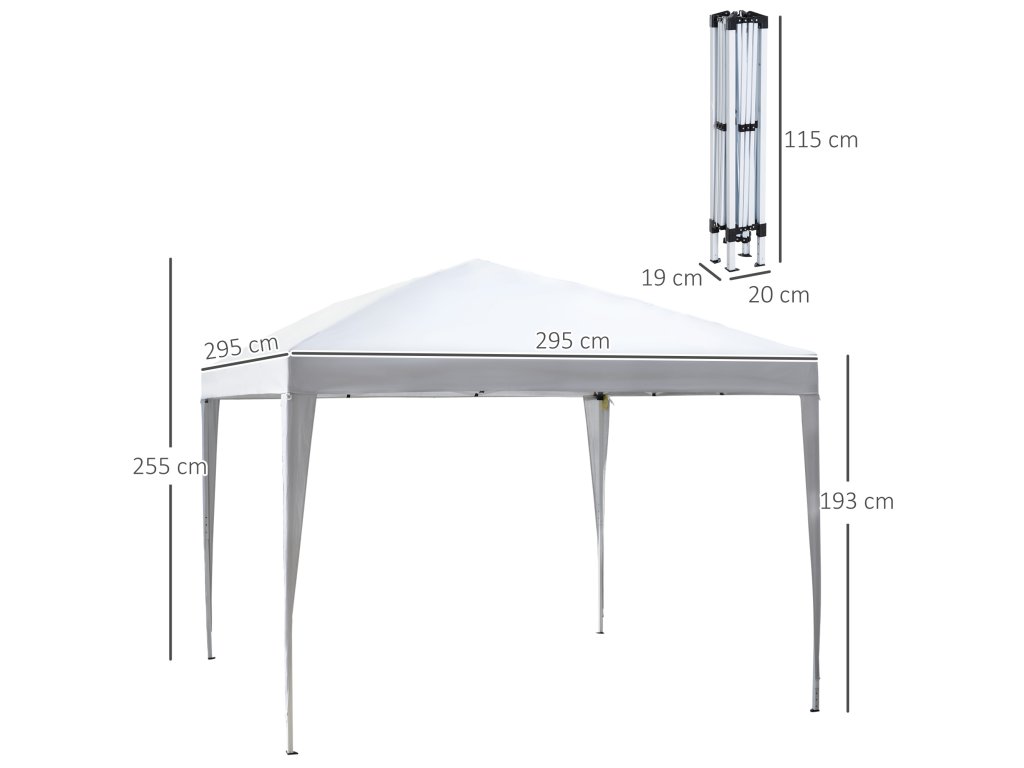 Tento skládací altán o rozměrech 2,95 x 2,95 m slouží jako praktický venkovní přístřešek, který ochrání vaši rodinu nebo hosty před nepříjemným počasím. Párty stan je ideální pro rodinné oslavy, svatby, pikniky, sportovní akce, prodejní stánky, řemeslné trhy, staveniště a kempování. Tento skládací altán lze postavit a sundat za méně než minutu a dodává se také s příslušnou přenosnou taškou, aby byla přeprava ještě pohodlnější a snadnější.