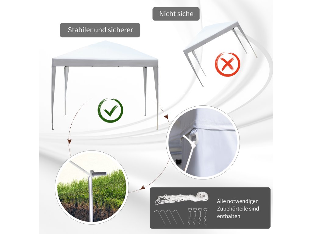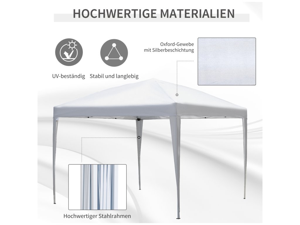 Skládací altán Outsunny 2,95x2,95 m s UV ochranou, skládací, ocel a tkanina Oxford, bílý, pro zahradní párty a akce | Aosom.de