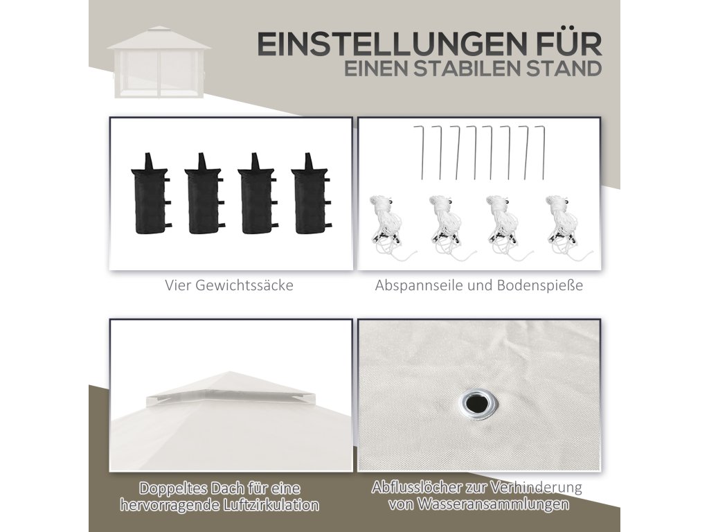 Skládací altán Outsunny 4x4 m se 4 síťovými závěsy, výškově nastavitelný, UV ochrana, dvojitá střecha, taška na přenášení, krémově bílý, pro zahradu a akce |