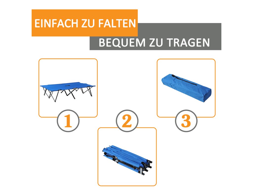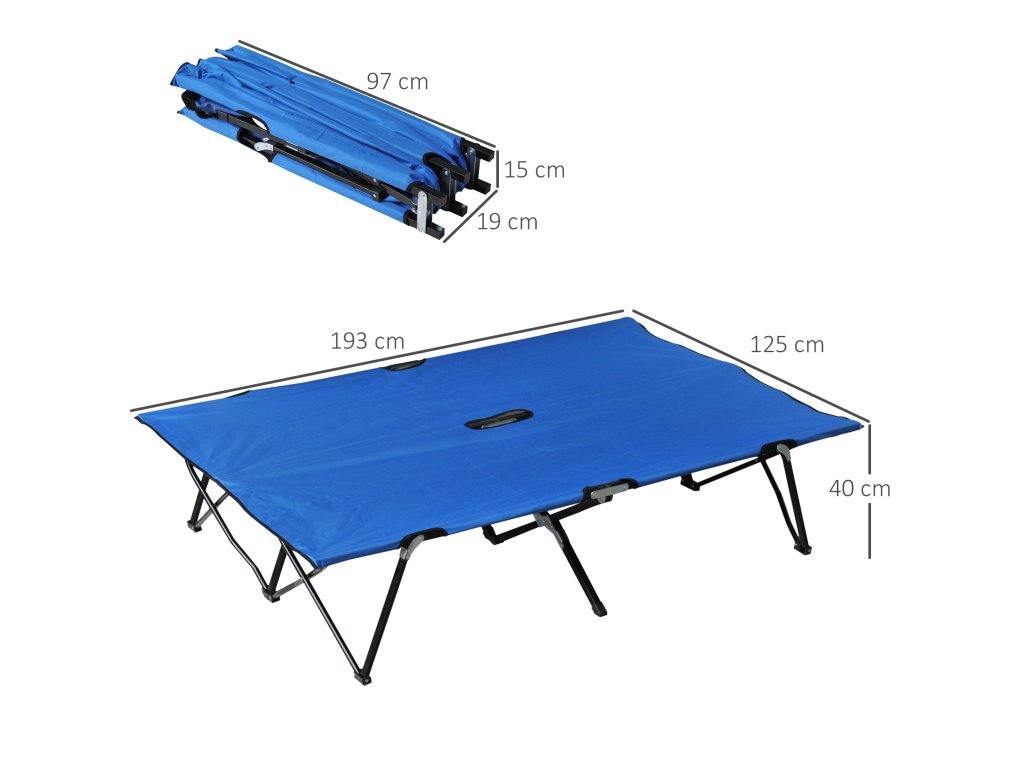 Skládací kempinkové lůžko pro 2 osoby, kempinkové lůžko s taškou, do 136 kg, Oxford ocel, modrá+černá, 193x125x40cm| Aosom