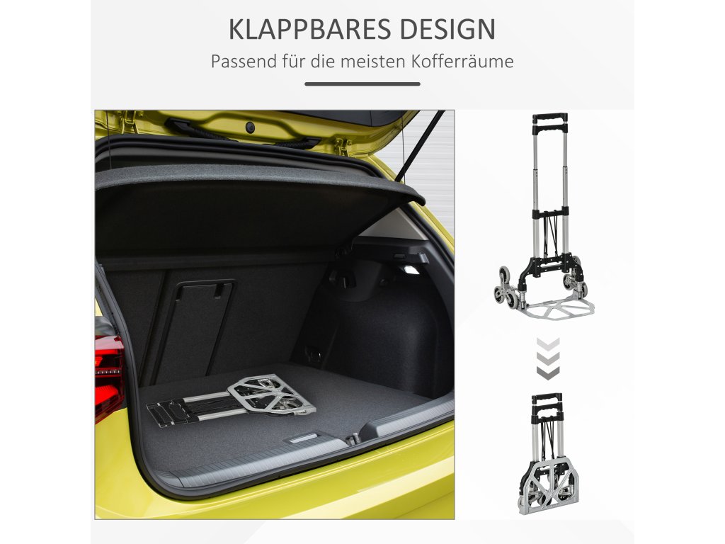 Skládací vozík na schody DURHAND se systémem 6 kol a pevným lanem, hliníková stříbrná, nosnost až 70 kg pro snadnou přepravu | Aosom.de
