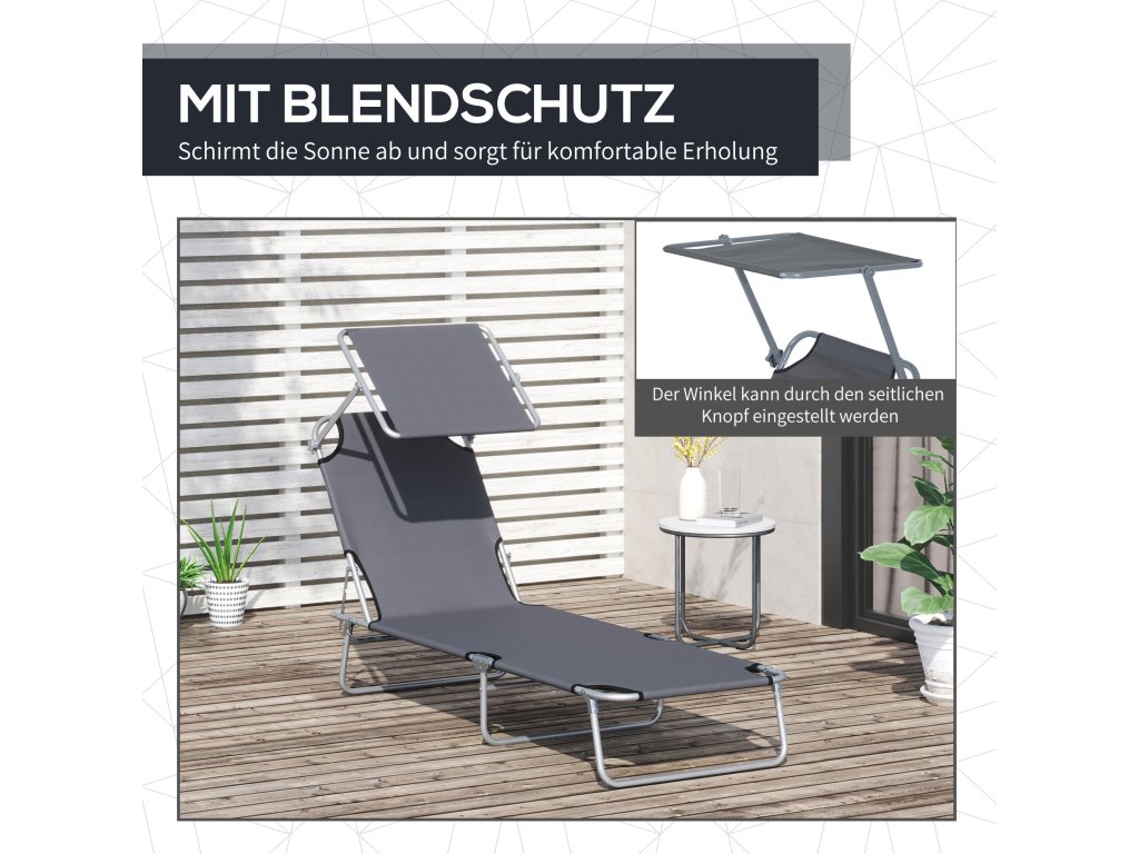 Skládací zahradní lehátko Outsunny s ochranou proti slunci šedé 187 x 58 x 36 cm ideální na pláž a terasu | Aosom.de