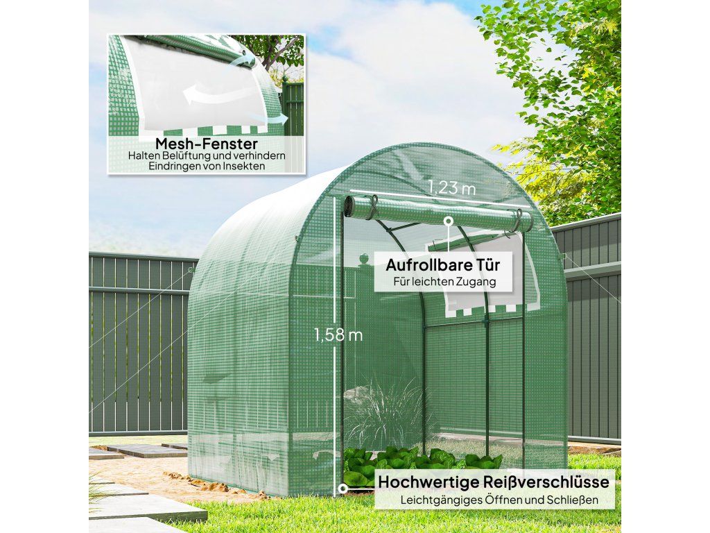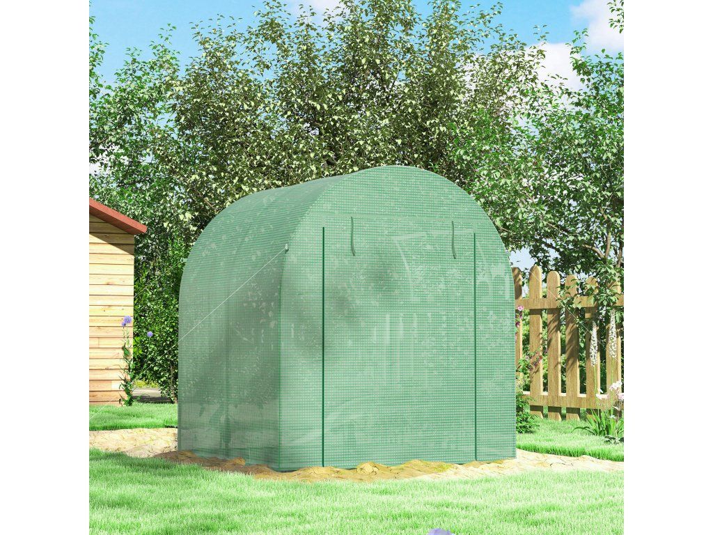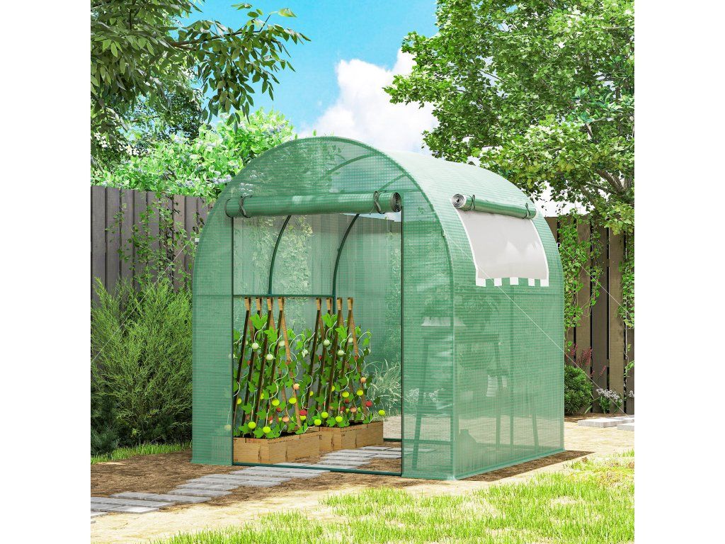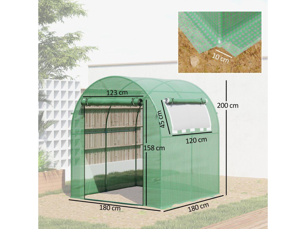 Skleník Outsunny, 180 x 180 x 200 cm, fóliový skleník s rolovacími dveřmi, UV ochrana, skleník, domek na rajčata s bočním oknem, PE síťová fólie, zimní skleník pro zahradu, balkon, zeleň