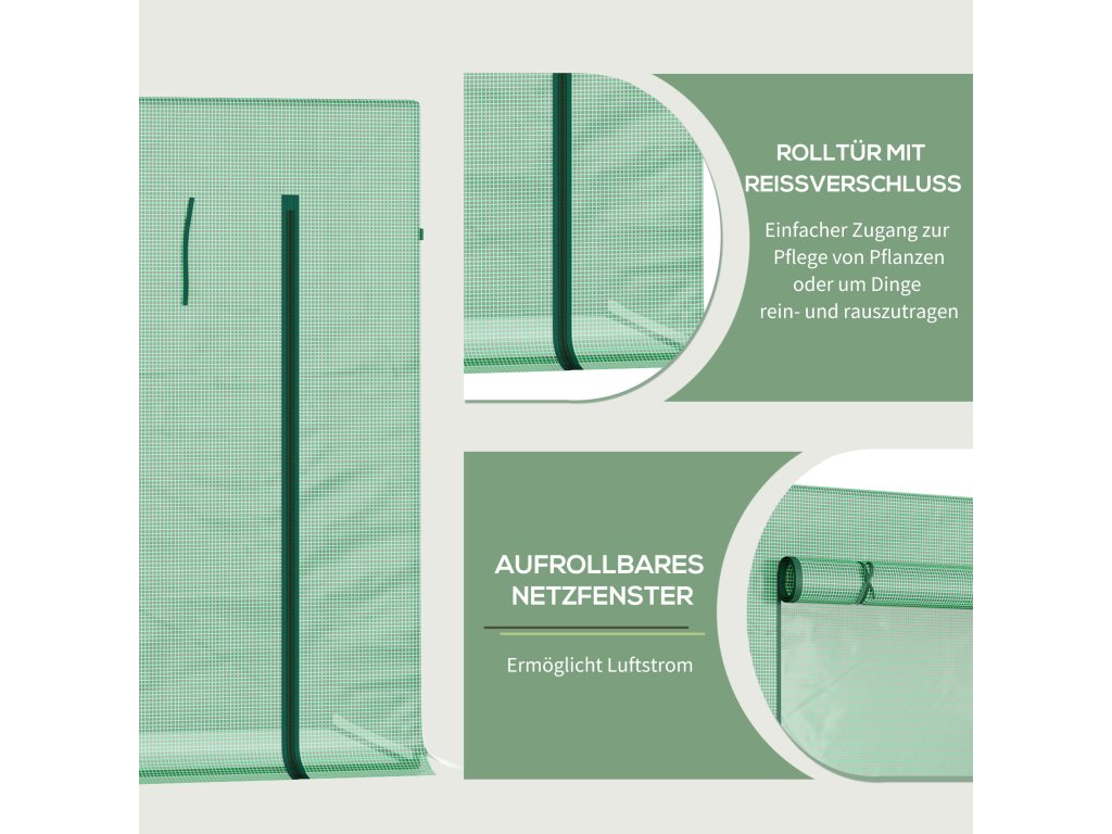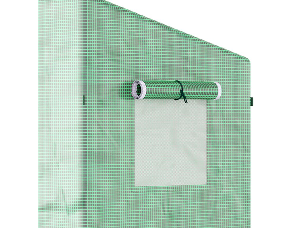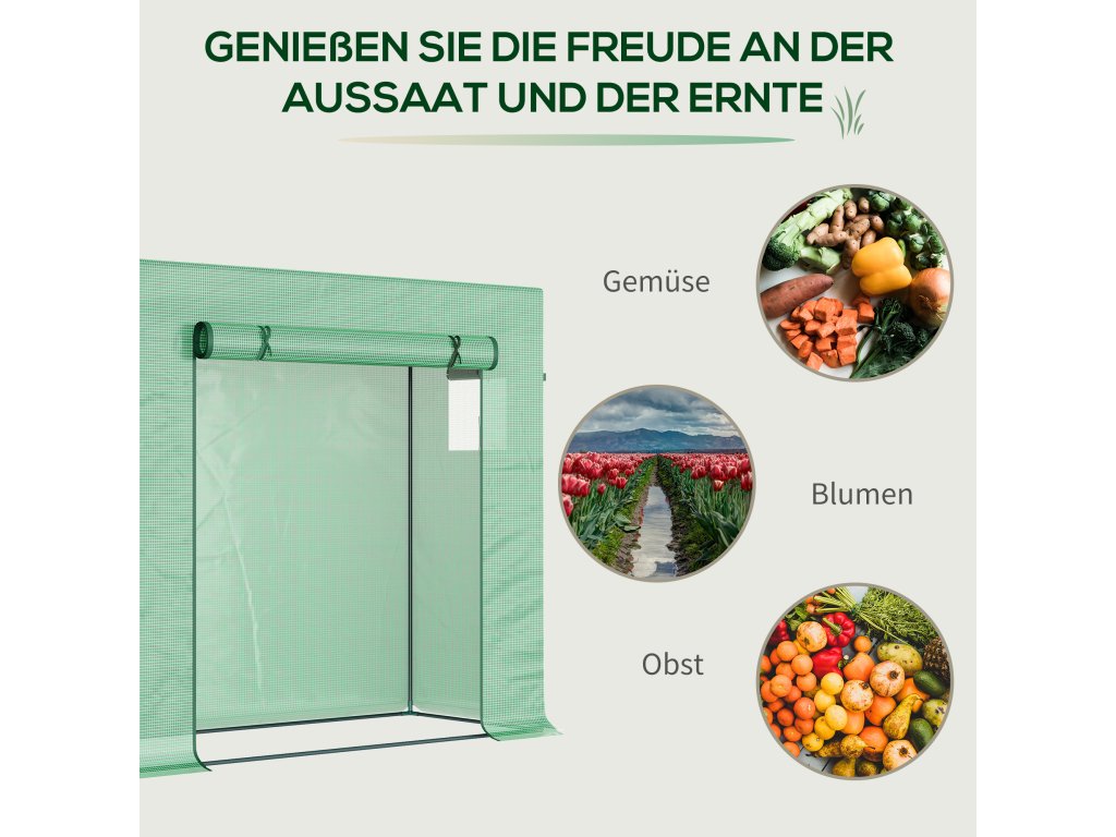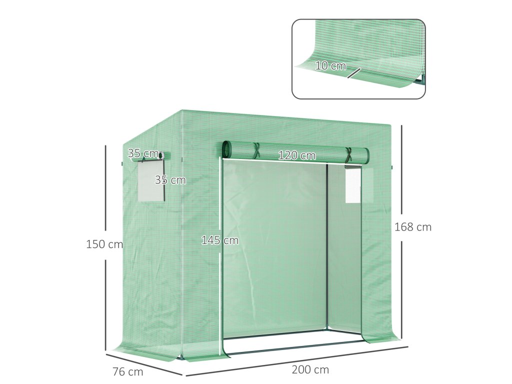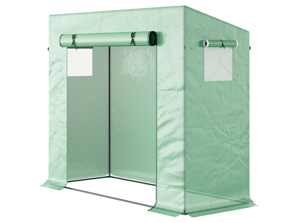 Skleník Outsunny, 200 x 76 x 168 cm, fóliový skleník s rolovacími dveřmi, skleník, domek na rajčata s bočním oknem, PE síťová fólie, zimní skleník pro zahradu, balkon, zeleň