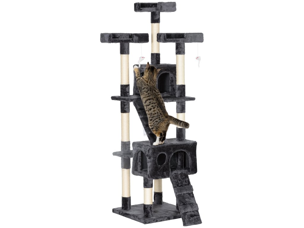 - Prémiové provedení: Velký kočičí strom pro hru, cvičení a odpočinek vaší kočky: 3 bidýlka, 2 domečky, 2 žebříky, 3 visící hračky pro myši.