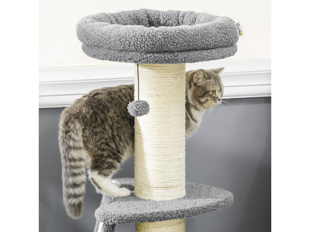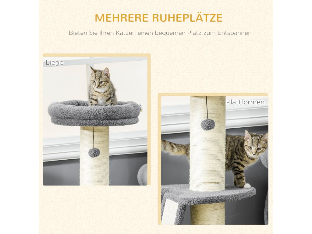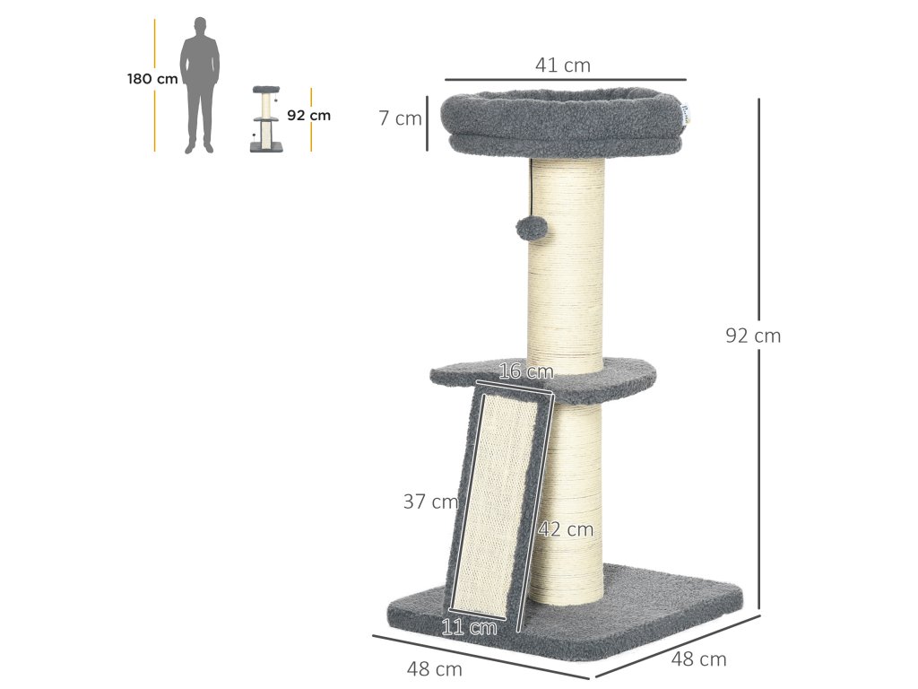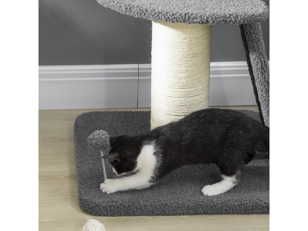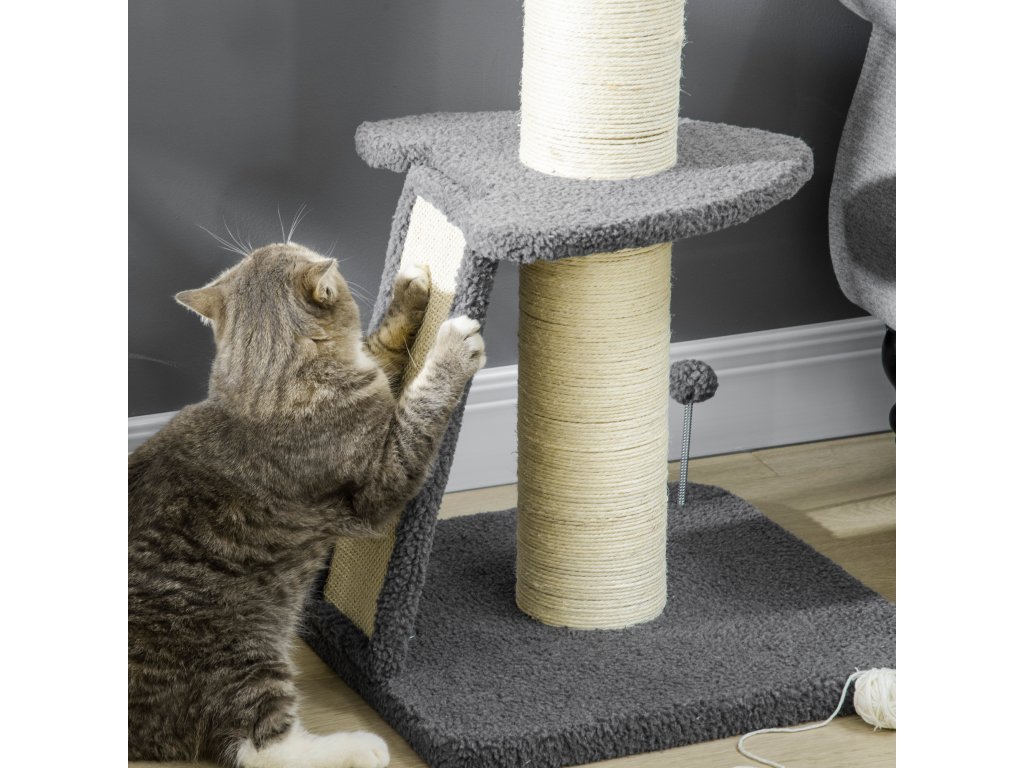 Na tomto skvělém škrabadle od PawHut se váš mazlíček může vyřádit, lenošit a uspokojit svůj instinkt škrábání. Tlustý, stabilní škrabací sloupek a sisalová škrabací deska šikovně odvedou pozornost vašeho mazlíčka od nábytku a nabídnou mu mnohem pohodlnější příležitost ke škrábání. Horní plošina slouží nejen jako pohodlné místo k odpočinku, ale poskytuje také praktické útočiště pro vašeho mazlíčka. A konečně hrací míč poskytuje více zábavy a rozmanitosti.