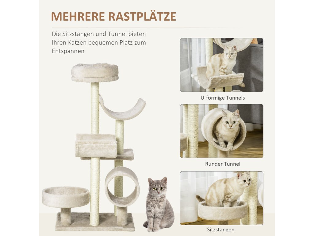 Škrabadlo pro kočky PawHut s hračkami a tunelem Béžová 50x40x105 cm pro milovníky koček a zábavy | Aosom.de