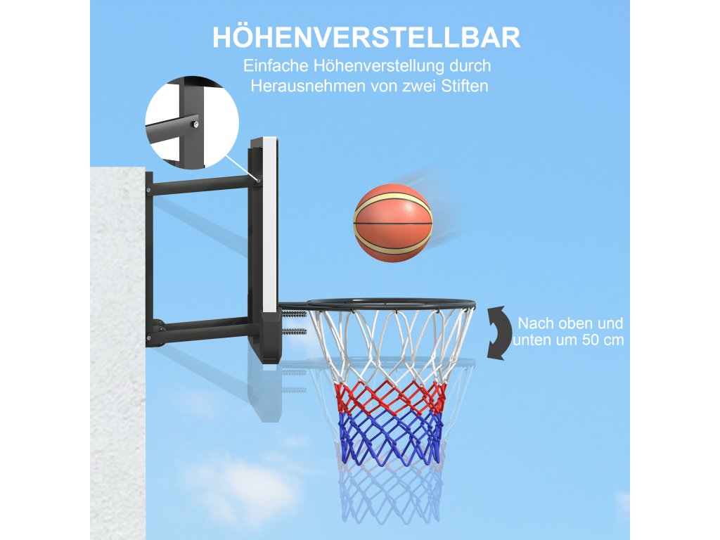 - Nastavitelná výška: Nastavte výšku zadní stěny basketbalového koše až o 50 cm, abyste zajistili ideální výšku pro hráče všech věkových kategorií a schopností