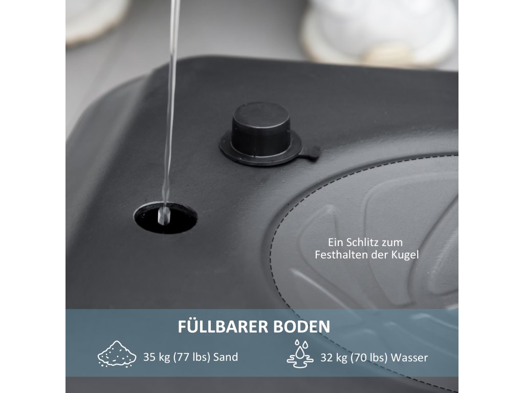 - ✔ Stabilní základna, kterou lze naplnit vodou, pískem nebo obojím