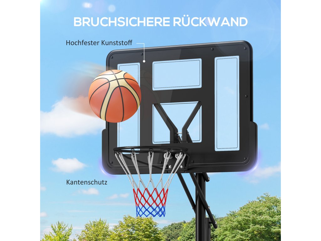 SPORTNOW basketbalový koš venkovní, nastavitelná výška koše 230-305 cm, basketbalový stojan s nerozbitnou zadní stěnou 110 x 75 cm s kolečky, odpružený koš, hmotnost pro dospělé