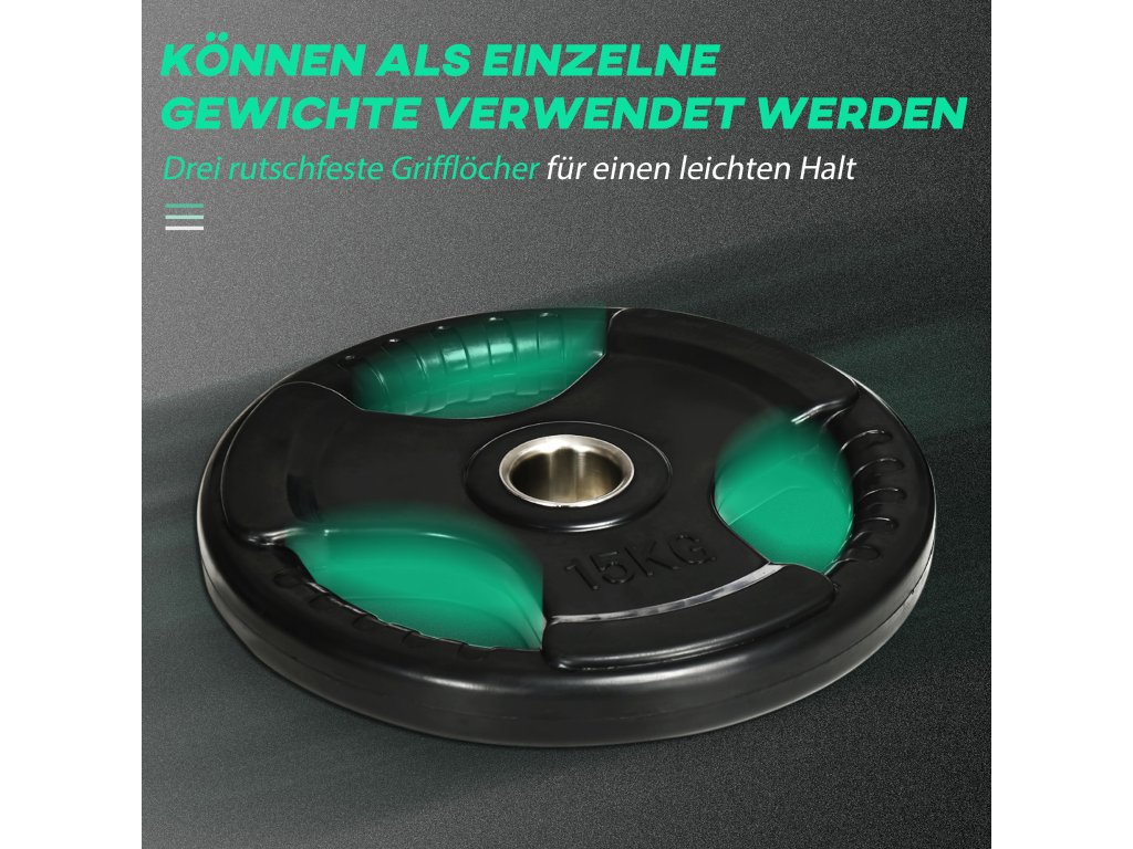 SPORTNOW sada 2 zátěžových talířů 15 KG Tri-Grip s pogumovanými olympijskými kotouči s otvorem 5 cm pro silový trénink | Aosom.de