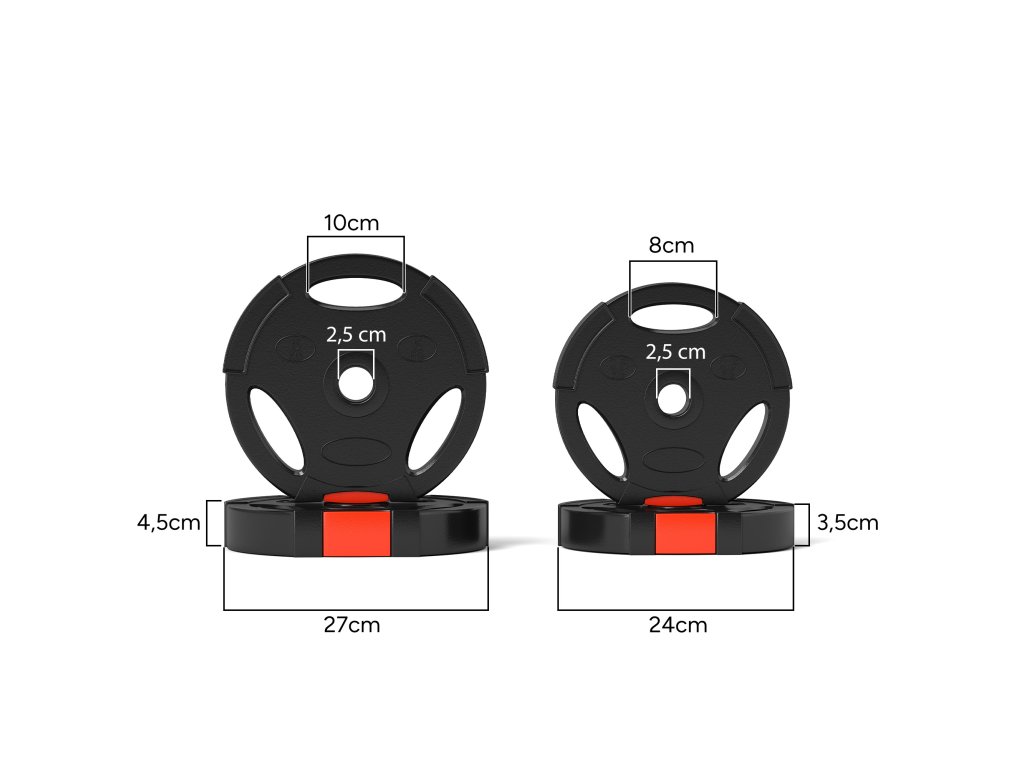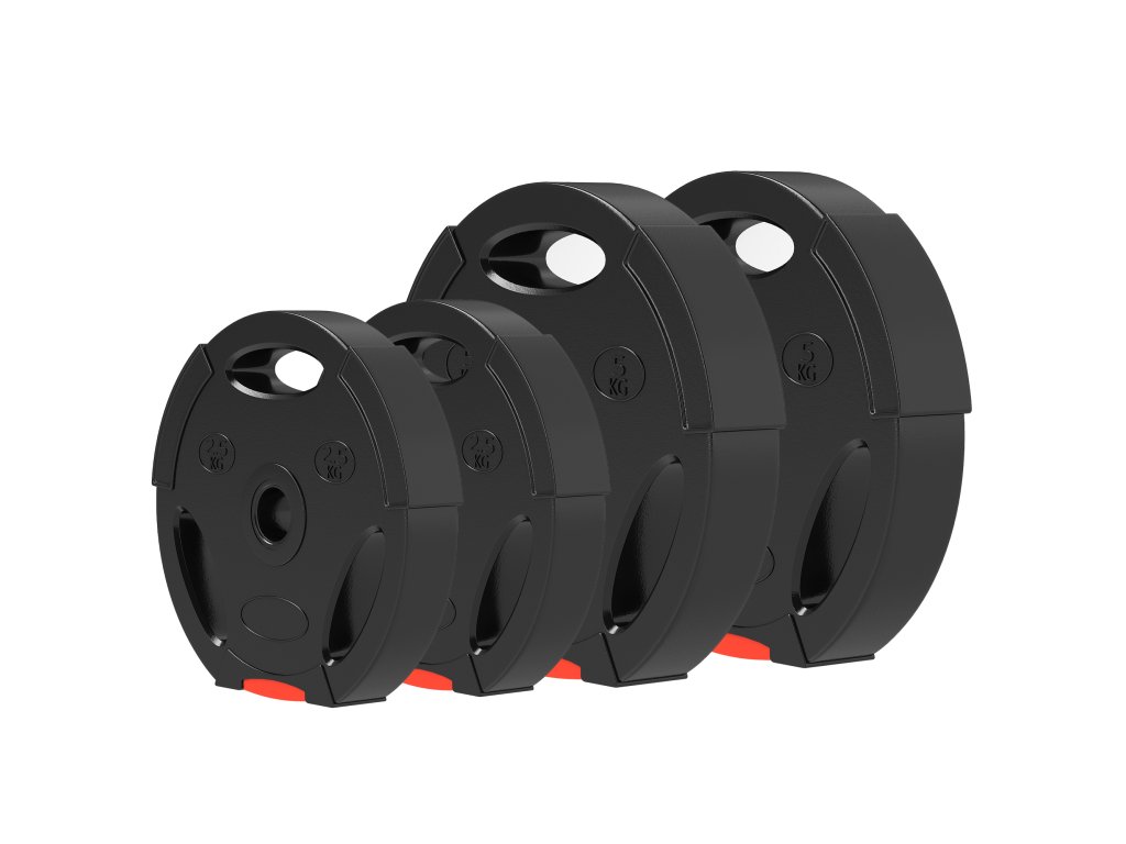 - Tři úchopové otvory: Každá zátěžová deska je navržena se třemi úchopovými otvory, které umožňují provádět různé cviky bez tyče na činku, čímž se zvyšuje flexibilita vašeho tréninku