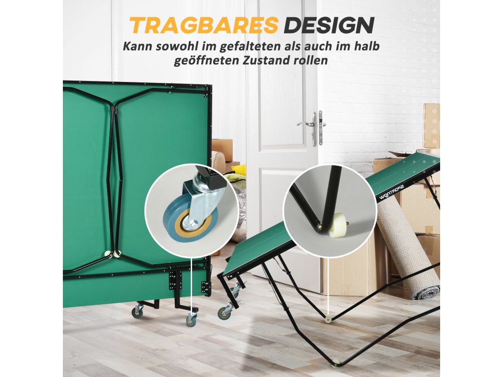 SPORTNOW vnitřní stůl na stolní tenis s kolečky, skládací stůl na stolní tenis, sada na stolní tenis se 2 pálkami na stolní tenis, 3 míčky, ocel, zelená| Aosom