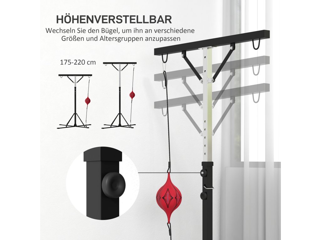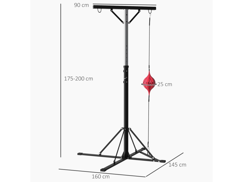 Stojan na boxovací pytel SPORTNOW, výškově nastavitelný, volně stojící držák boxovacího pytle se speedballem, nosnost až 60 kg, ocel, černý | Aosom