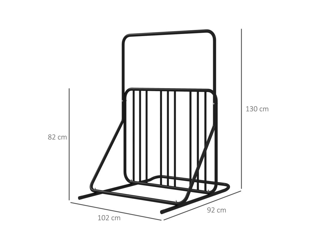- Výjimečná stabilita: Práškové lakování zajišťuje, že tento stojan na kola je odolný proti korozi a spolehlivý za každého počasí. Spodní příčné vzpěry zajišťují lepší rovnováhu